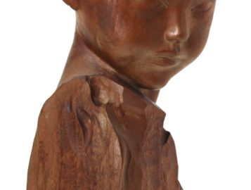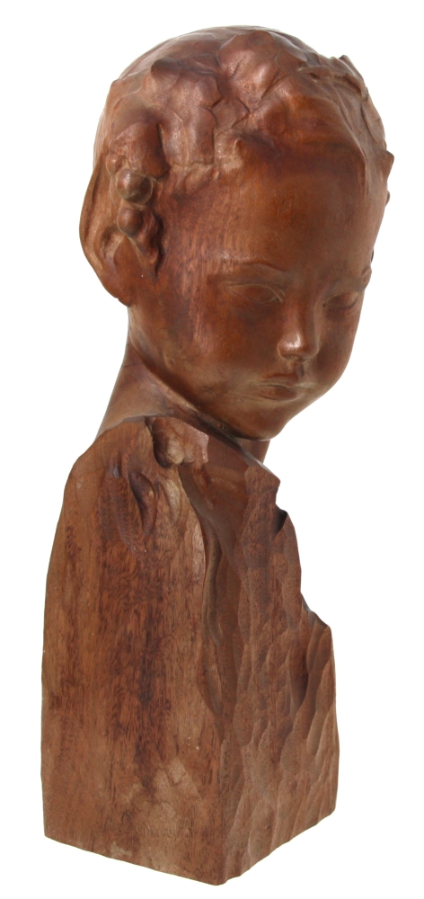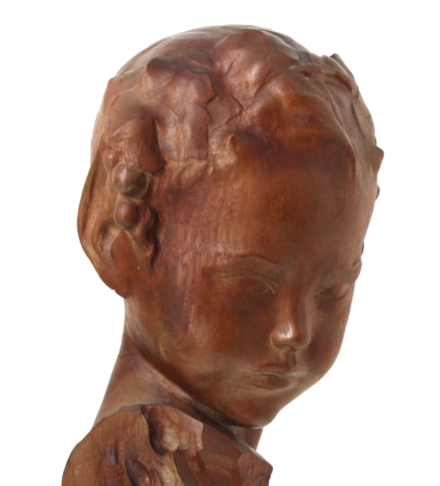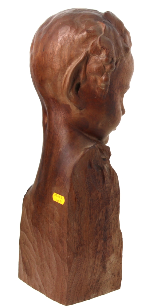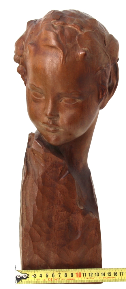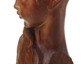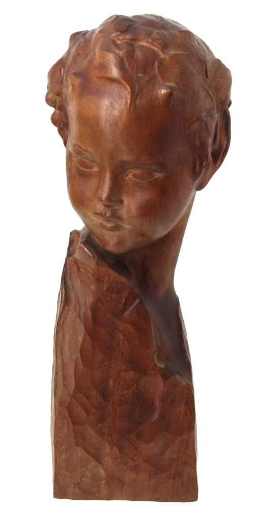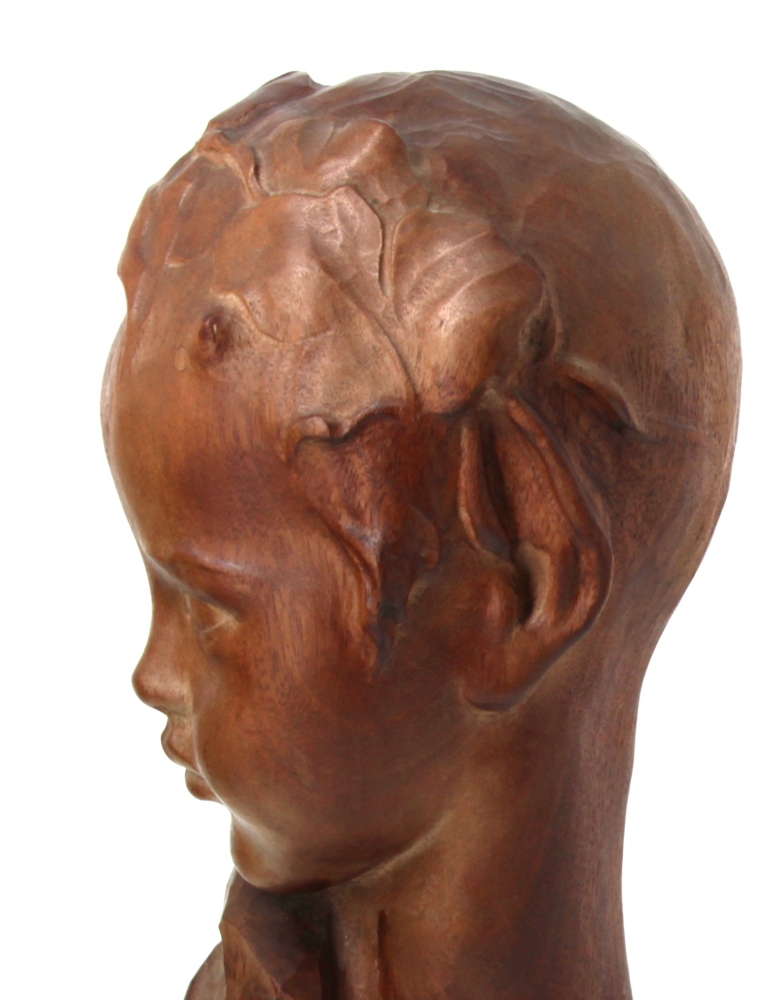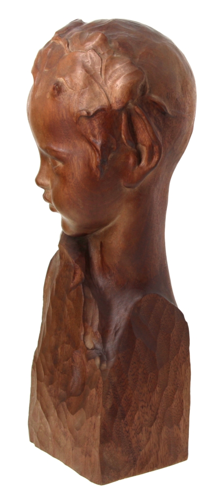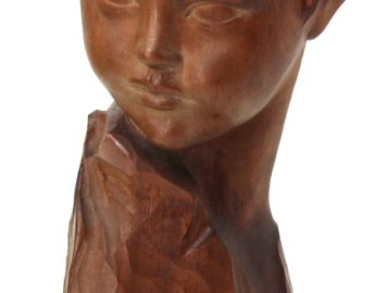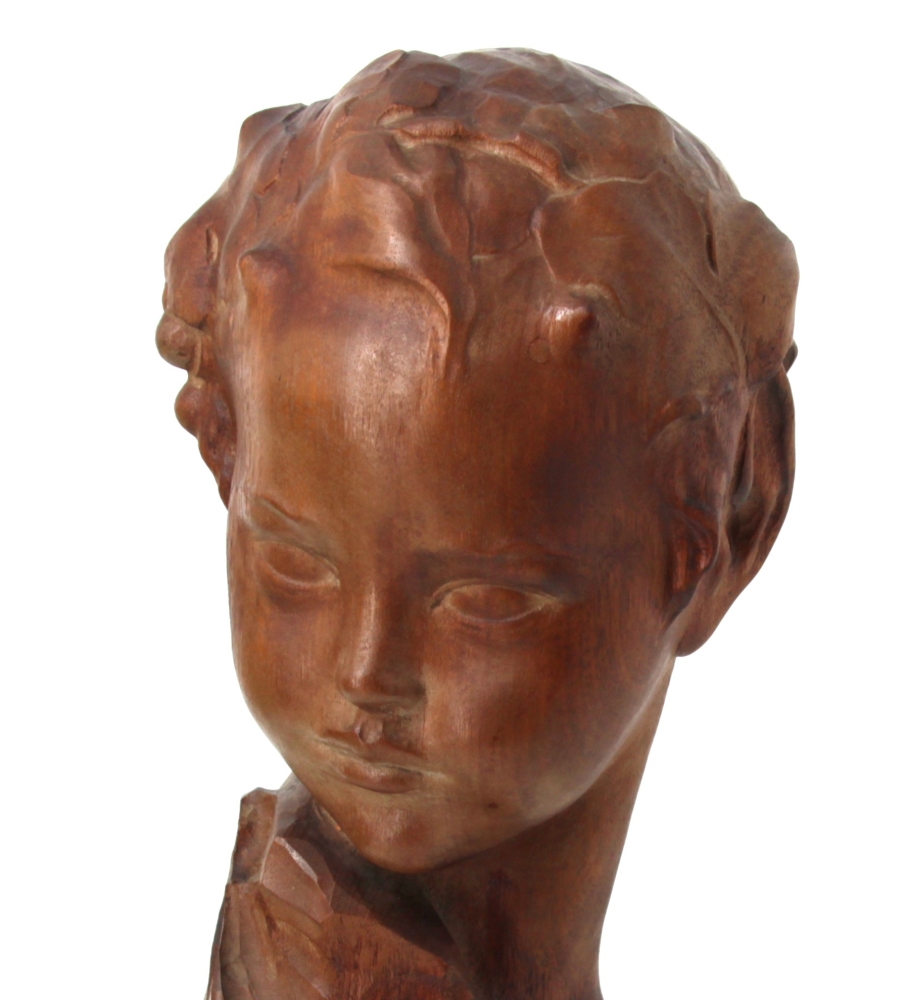 Amedeo GENNARELLI (1881-1943) « Buste de jeune faune », sujet en bois sculpté, signé à la base. H 44 cm (qq taches d’eau)