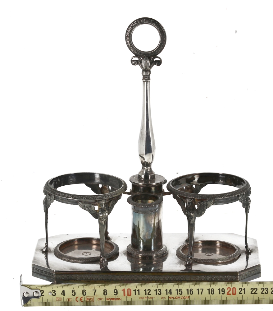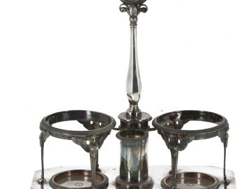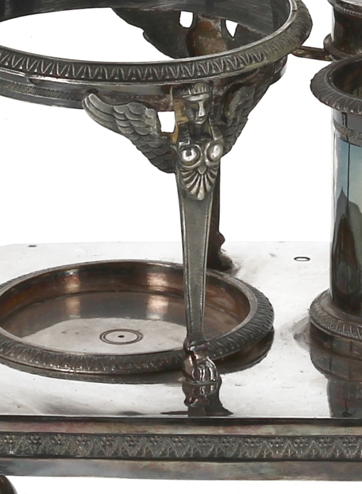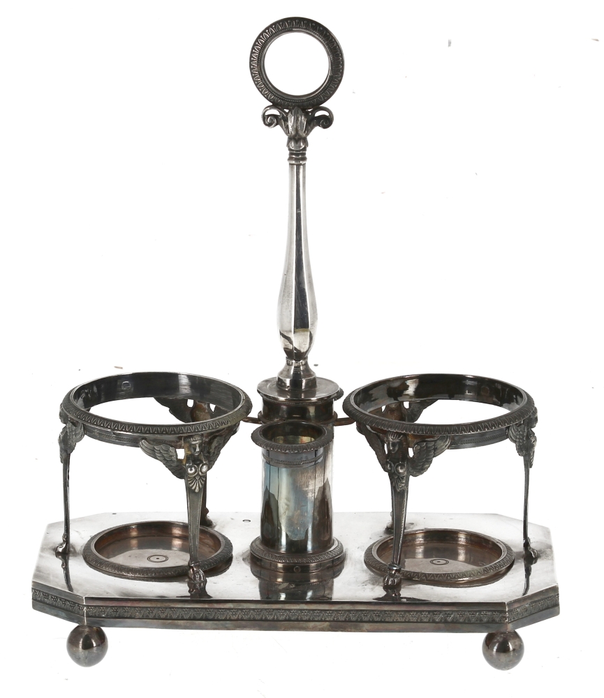 Antoine HIENCE (Orfèvre à Paris de 1798 à 1928) – Serviteur huilier-vinaigrier en argent, poinçon au Coq, style Empire. Poids 646,90 grs (sans sa verrerie)