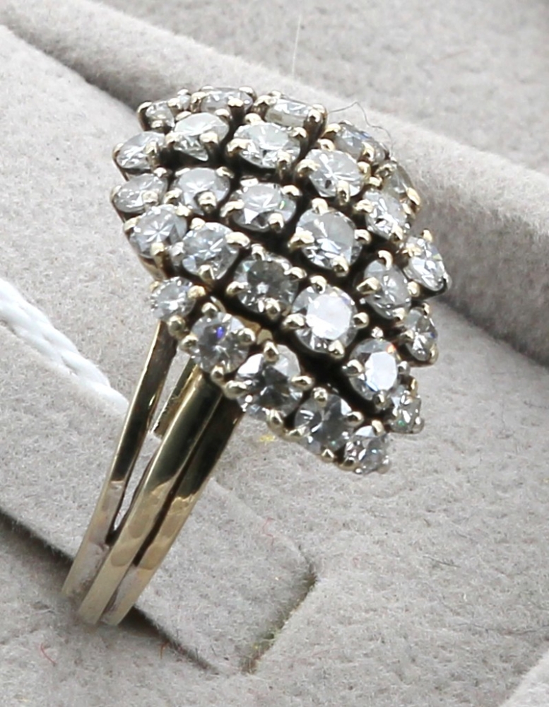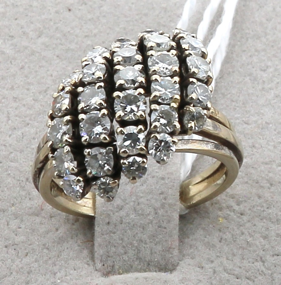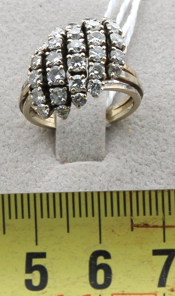 Bague en or 18 cts, poinçon tête d’aigle, sertie d’un pavage de diamants en serti griffes. Poids brut 6,70 grs. TDD 53