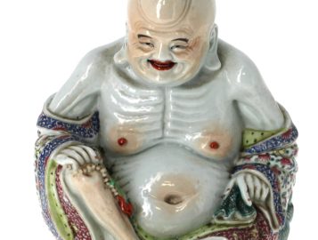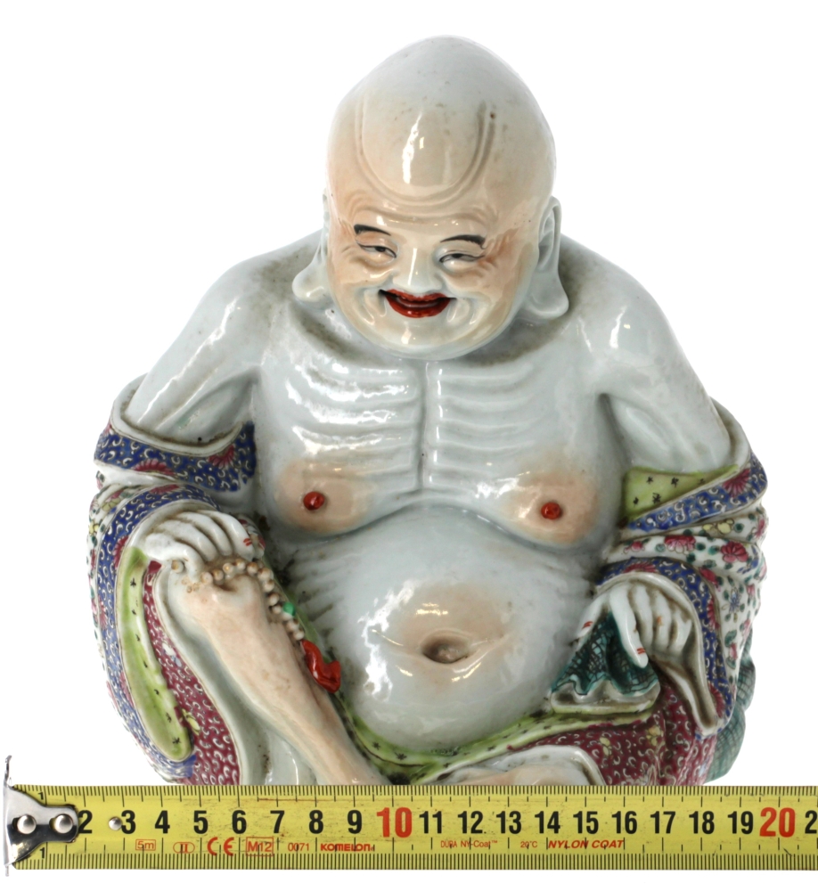 BOUDDHA Rieur – Sujet en porcelaine polychrome, H