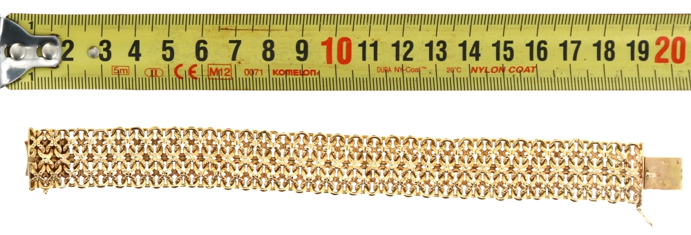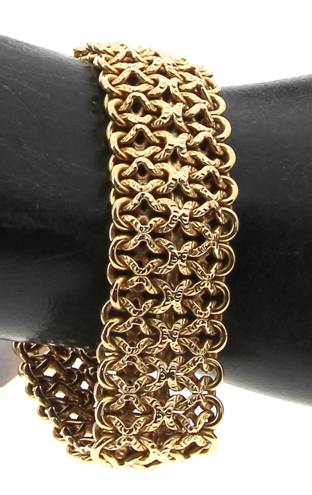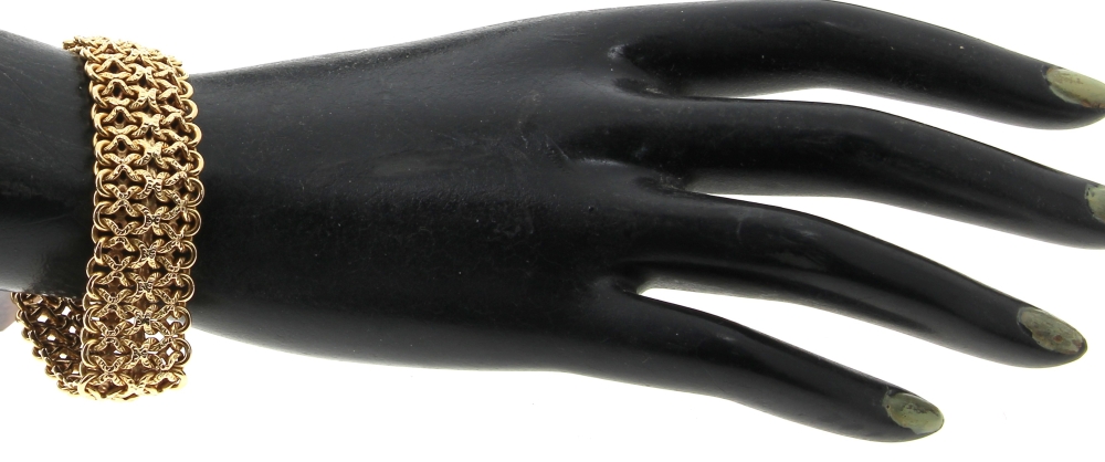 Bracelet en or jaune 18 cts, poinçon tête d’aigle, maille fantaisie, poids 21,80 grs