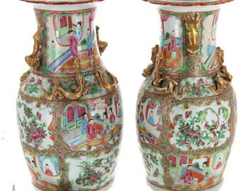 CHINE Canton – Paire de vases en porcelaine
