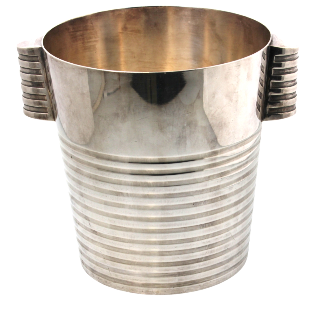 CHRISTOFLE – Luc LANEL (1893-1965) – Seau à champagne modèle Ondulations, modèlé créé par Luc LANEL pour la maison Christofle pour le paquebot Normandie. H 21 cm x diam. 19 cm