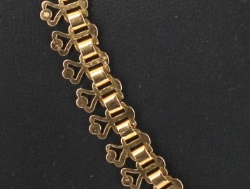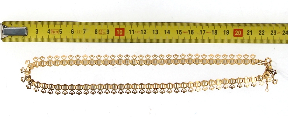 Collier draperie en or jaune 18 cts, poinçon tête d’aigle, poids 21,90 grs, avec chaînette de sécurité. (conservé en banque, vendu sur désignation)