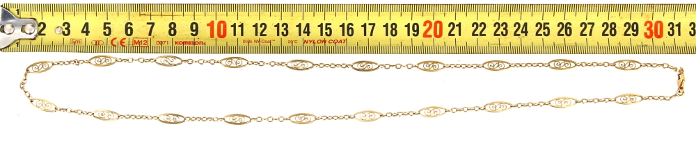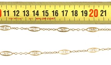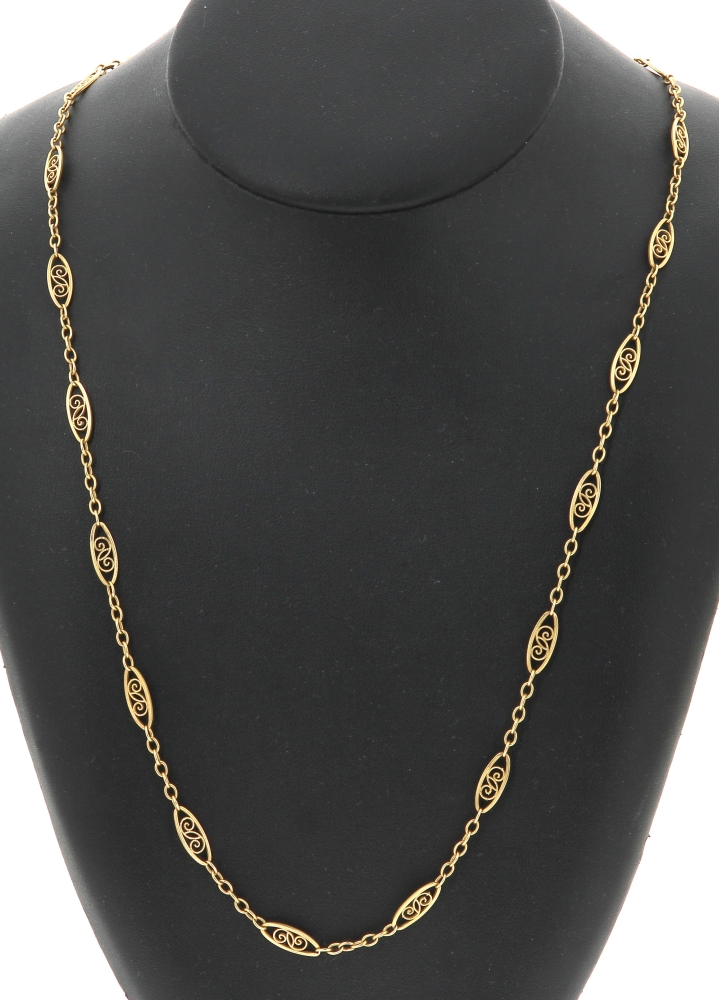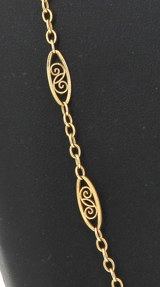 Collier en or jaune 18 cts (750ème) à maille filigranée, poids 12,30 grs. L 64 cm
