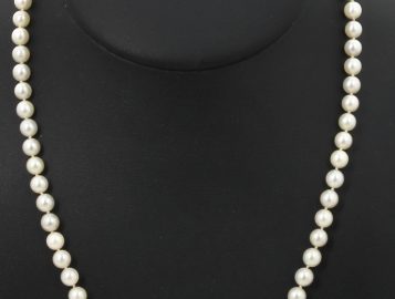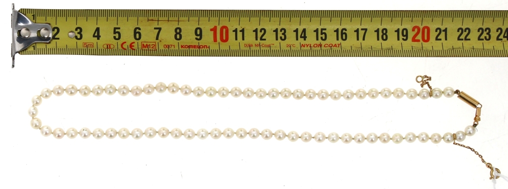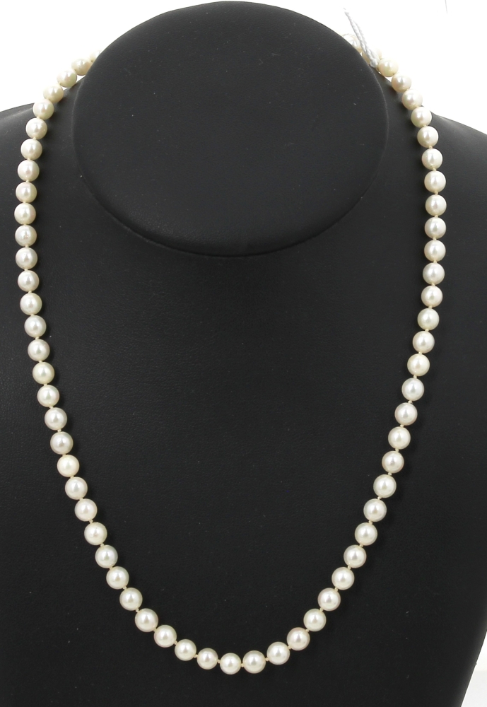 Collier shoker de 70 perles de culture 5 mm env., fermoir et chaînette de sécurité en or jaune