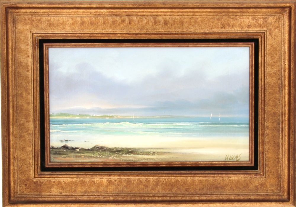 Dany LUCAS (1942-2011) « Marine par mer calme », huile sur toile, signée bas droite, 27 x 46 cm