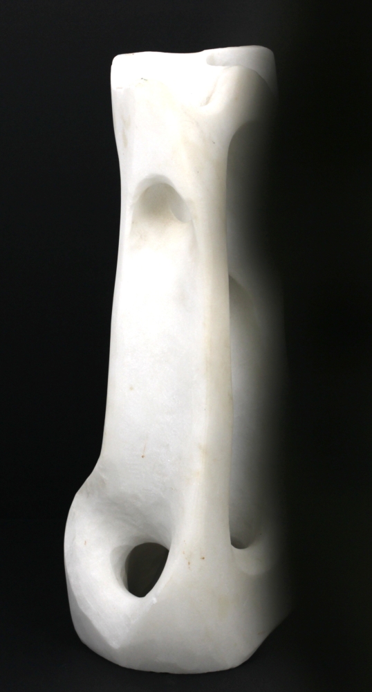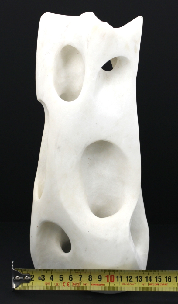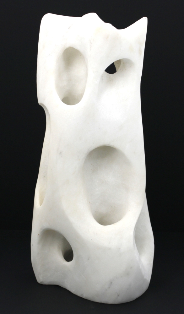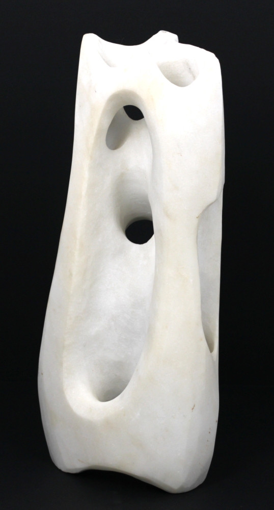 Ecole Xxème – Sculpture abstraite en marbre blanc sculpté et ajouré, H 28,5 cm