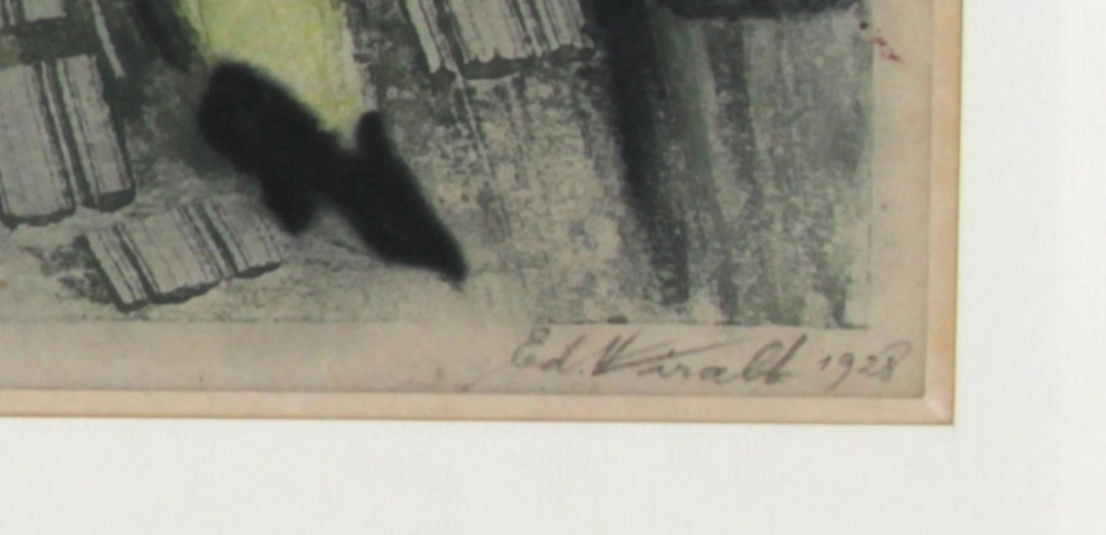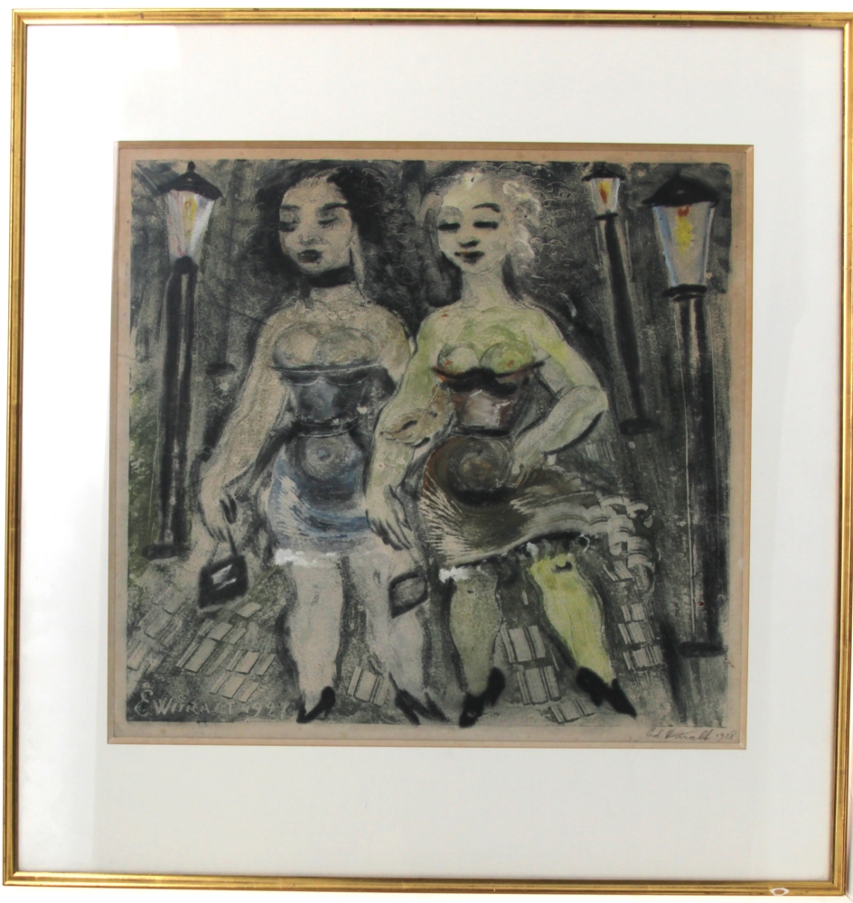 Eduard WIIRALT (1898-1954) « Les filles de joie », monotype en couleurs, signée et datée « 1927 » dans la planche, contresignée et datée « 1928 » bas droite, 39,5 x 42 cm