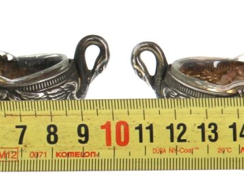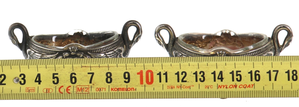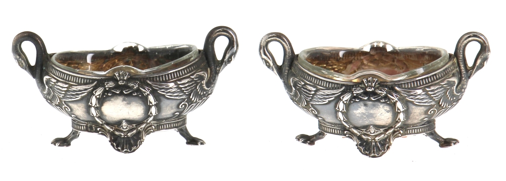 Emile BERGERON (orfèvre à Paris à partir de 1902) – Paire de salerons en argent, poinçon minerve, décor Empire, intérieur en verre. Poids de l’argent 28,60 grs