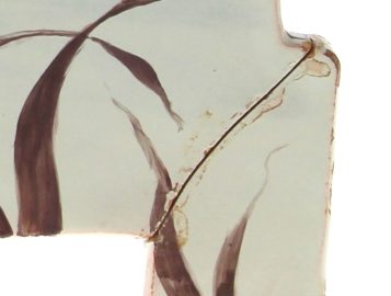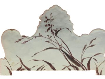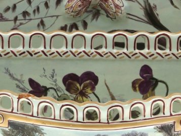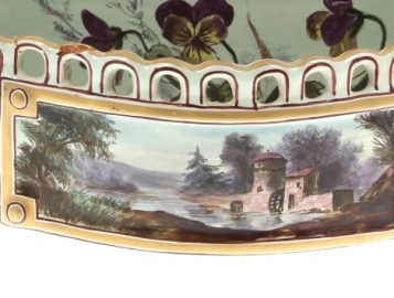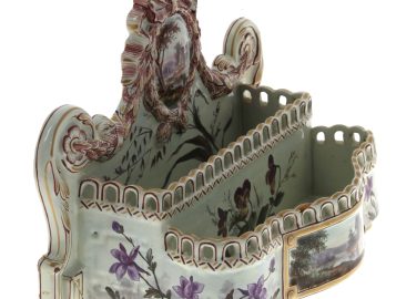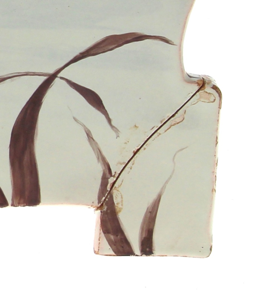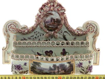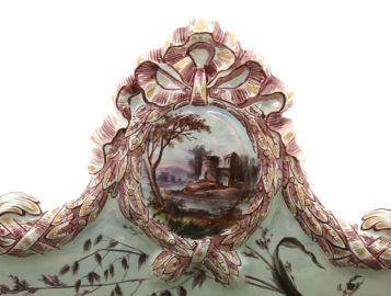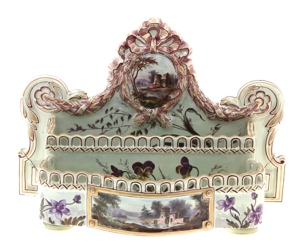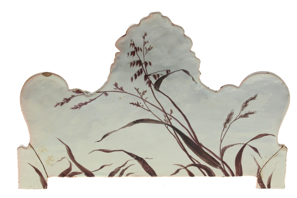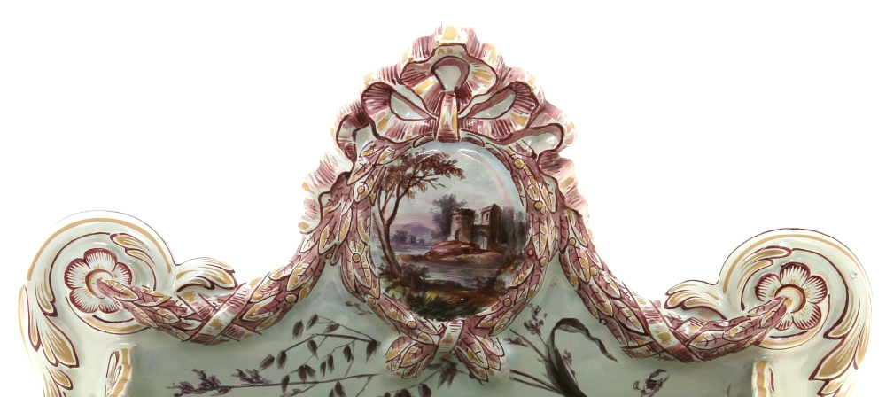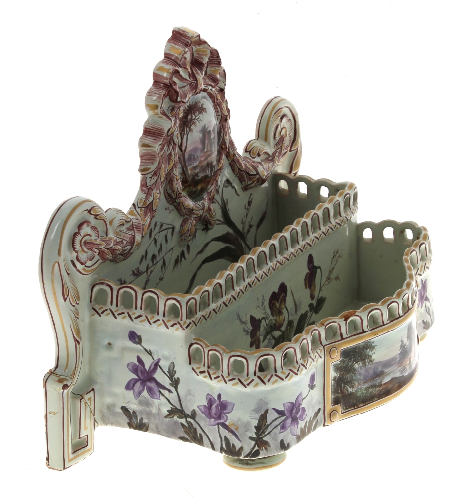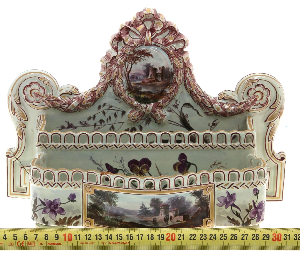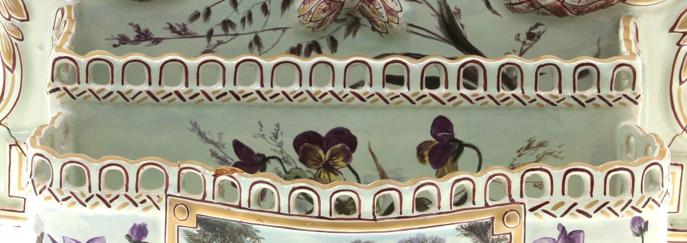 Emile GALLE (1846-1904) – Porte-courrier en faïence de Nancy, vers 1871/1877 (montants postérieurs accidentés et recollés, un éclat en façade recollé, un petit éclat au revers)