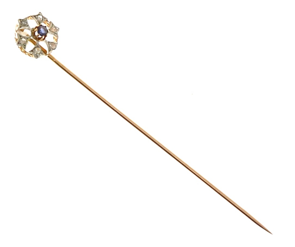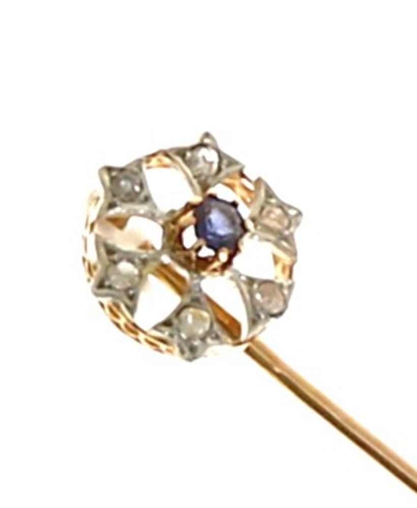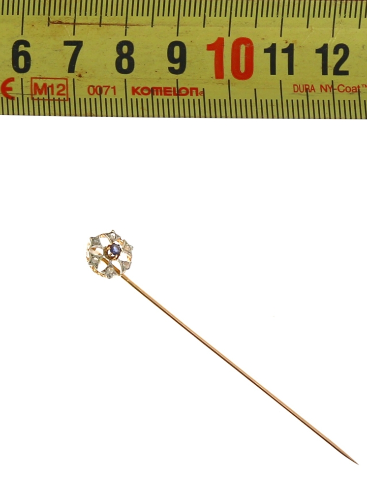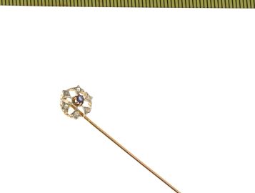 Epingle à cravate en or 18 cts, poinçon tête d’aigle, sertie de roses, poids brut 1,50 gr