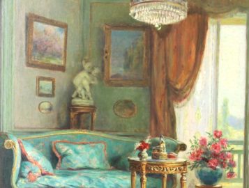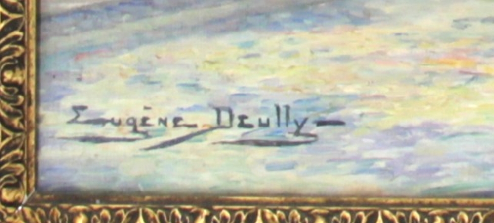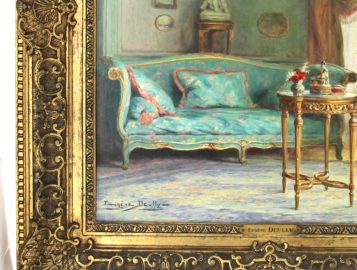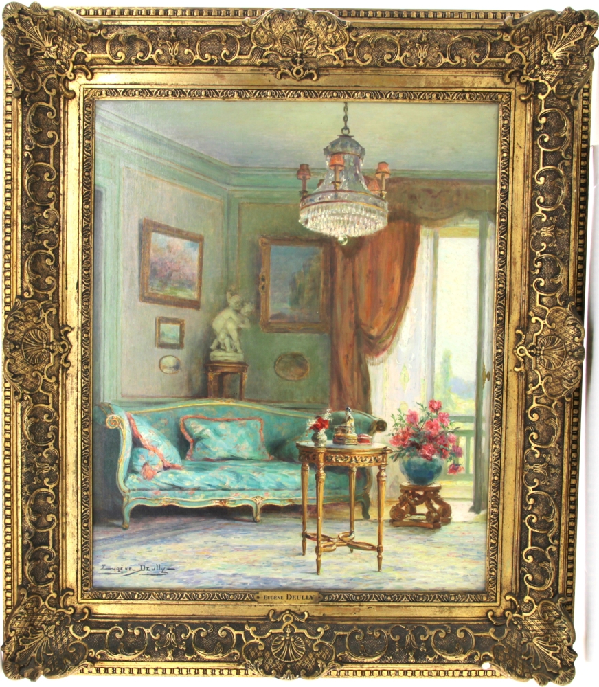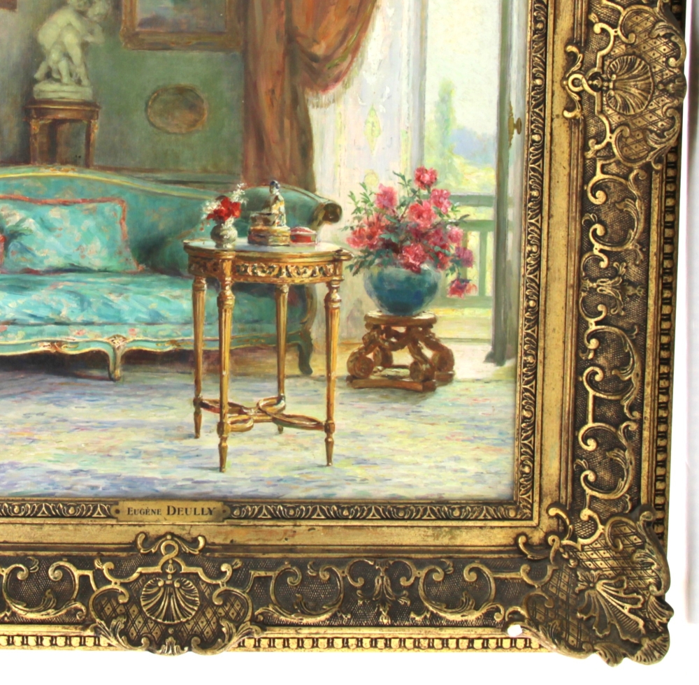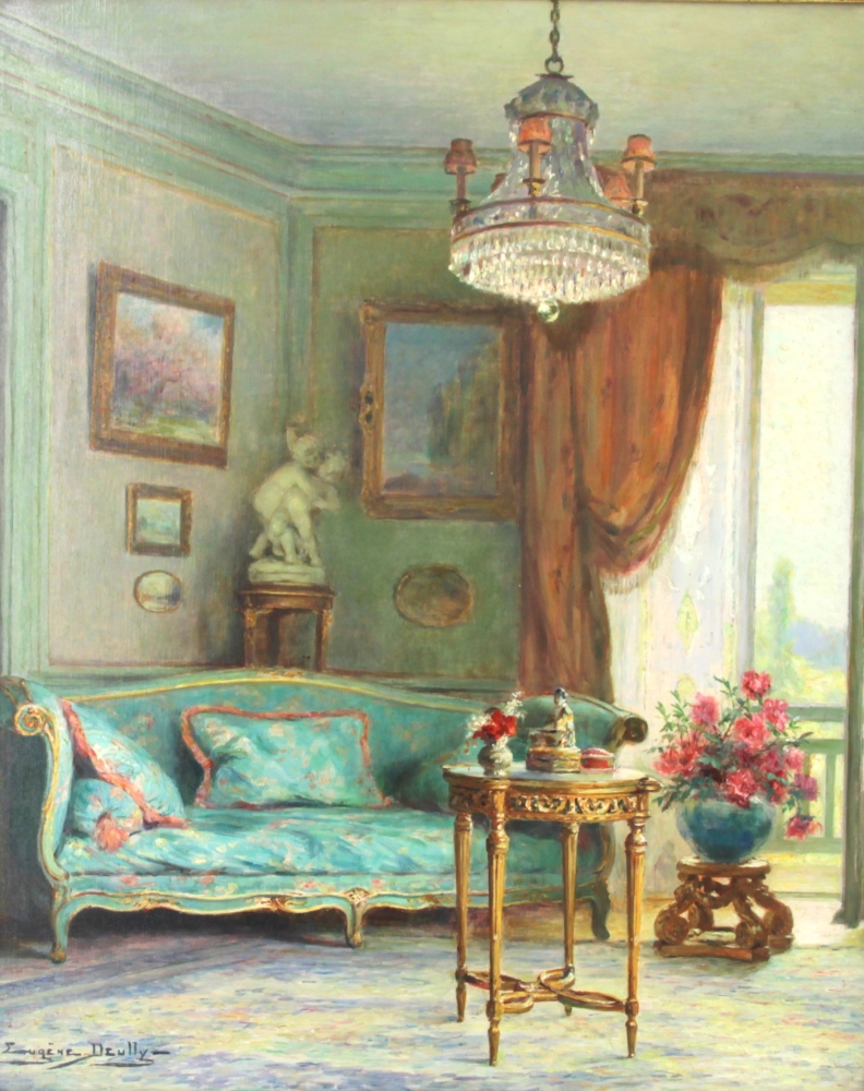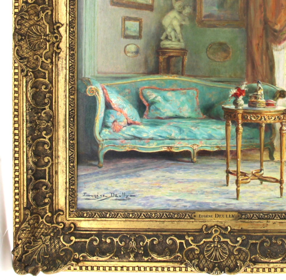 Eugène DEULLY (1860-1933) « Le sofa bleu », huile