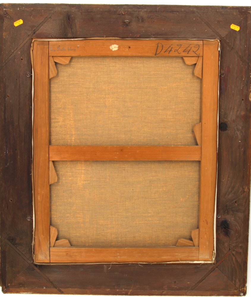 Eugène DEULLY (1860-1933) « Le sofa bleu », huile sur toile, signée bas gauche, 61 x 50 cm (dans un cadre en bois et stuc doré 80 x 70 cm)