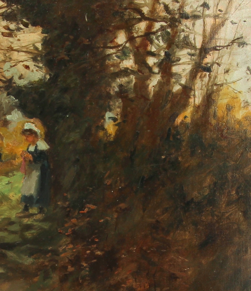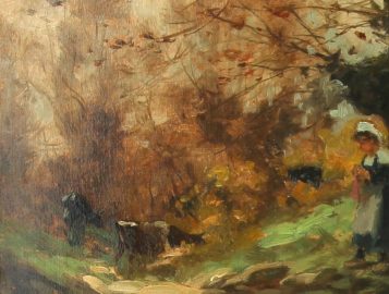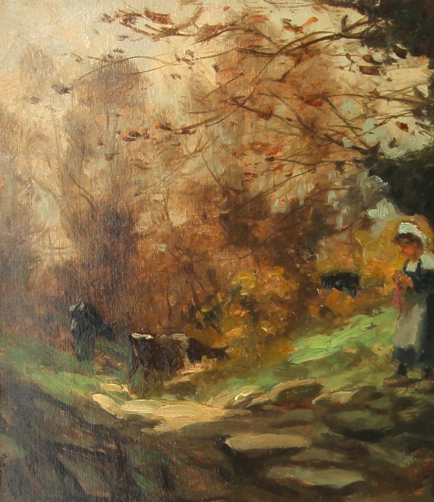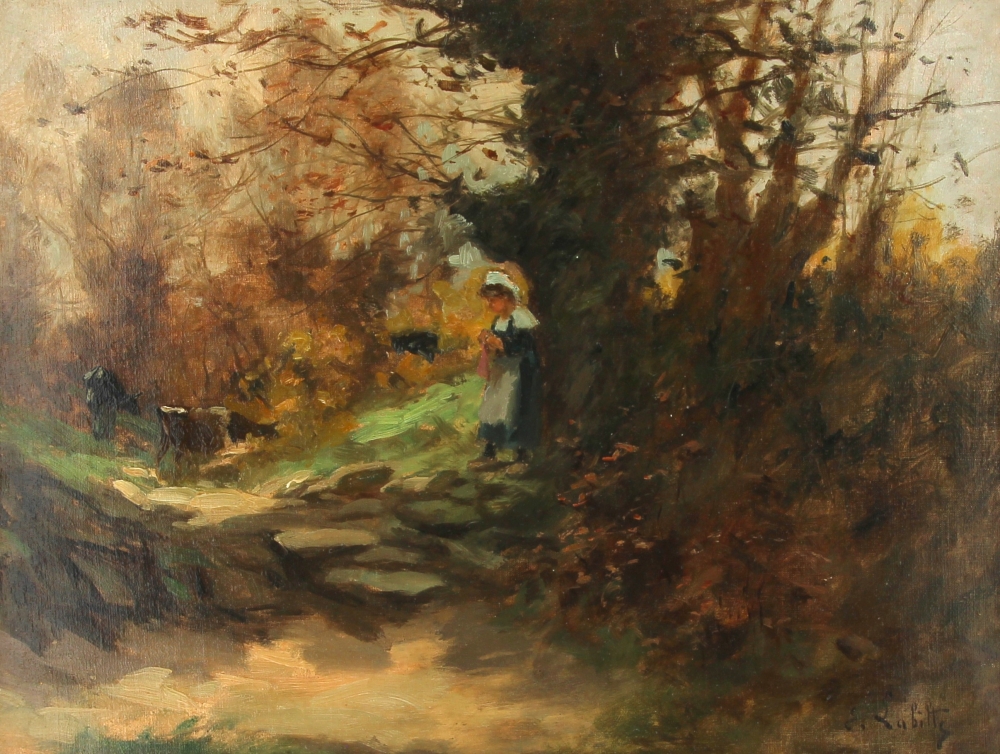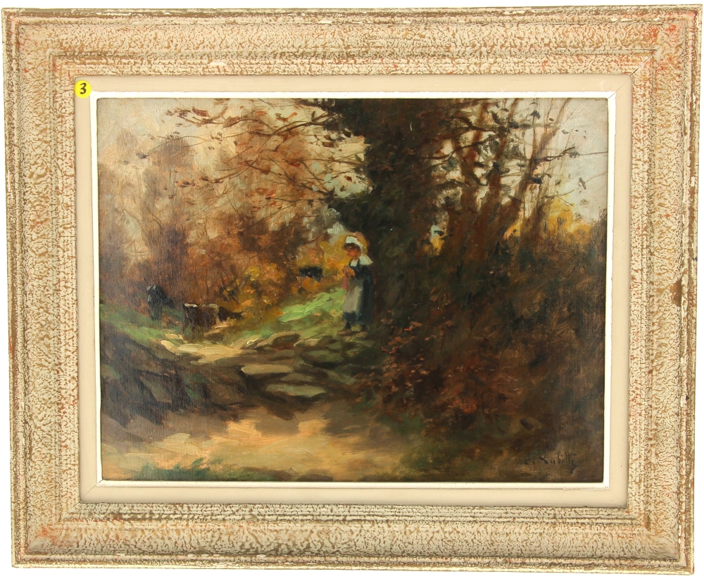 Eugène LABITTE (1858-1937) « Jeune bretonne gardienne de vaches », huile sur toile, signée bas droite, 35 x 46 cm