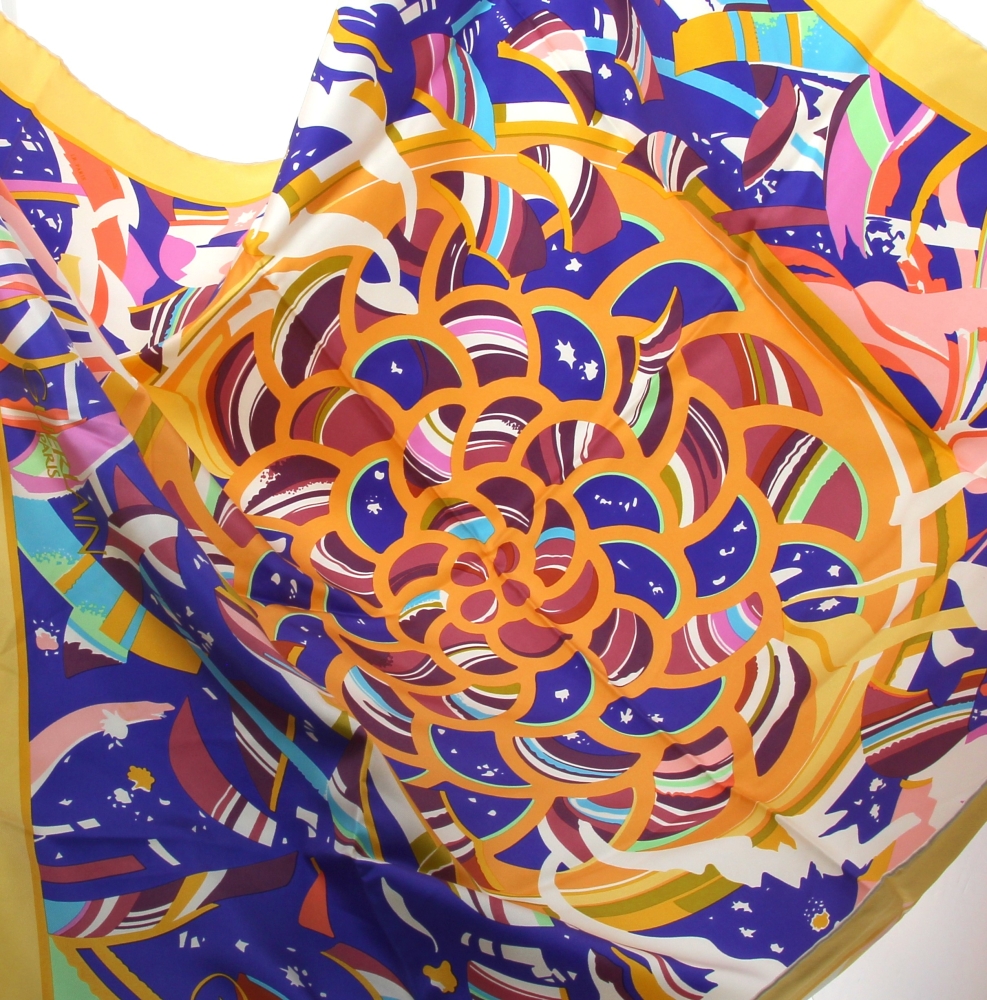 GUERLAIN – Carré en soie, neuf, 90×90 cm, avec