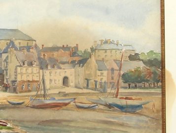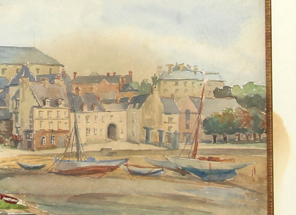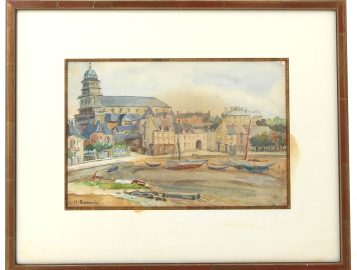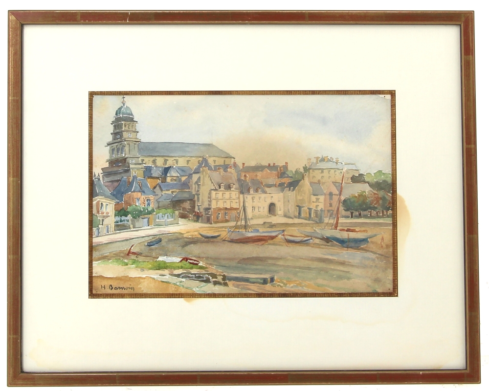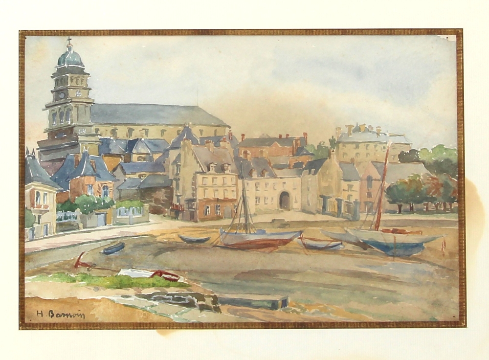 Henri Alphonse BARNOIN (1882-1940) « Bateaux à sec dans le port », aquarelle, signée bas gauche, 18,5 x 28 cm (qq rousseurs)