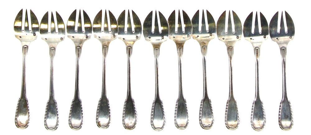 Henri LAPPARRA (Orfèvre à Paris à partir de 1923) – 11 fourchettes à huîtres en argent, poinçon minerve, Poids 299,20 grs