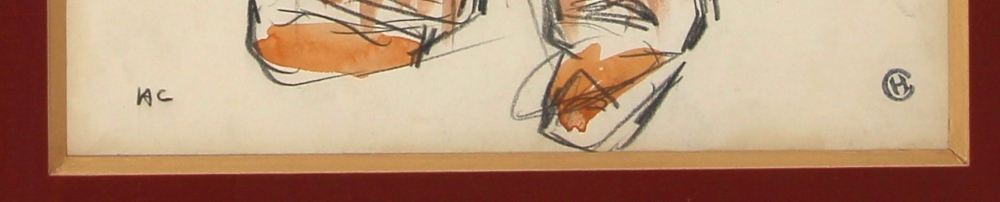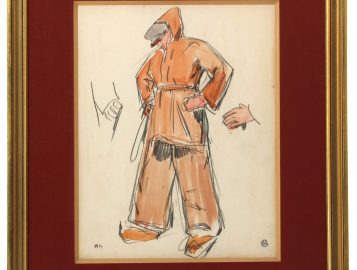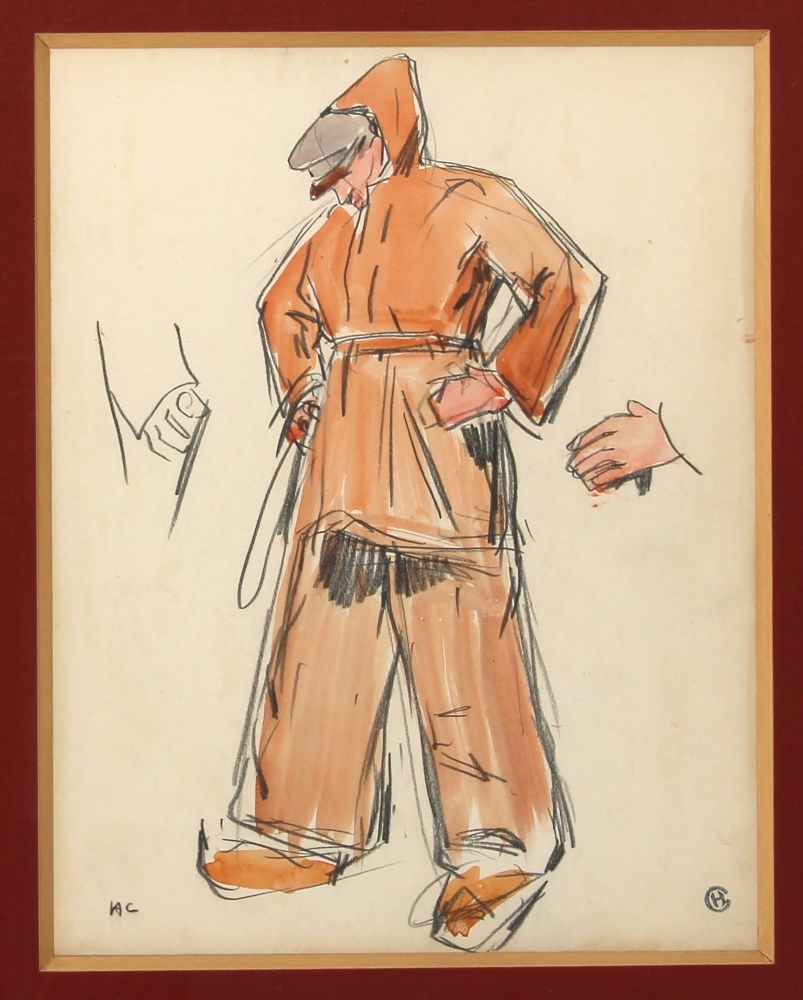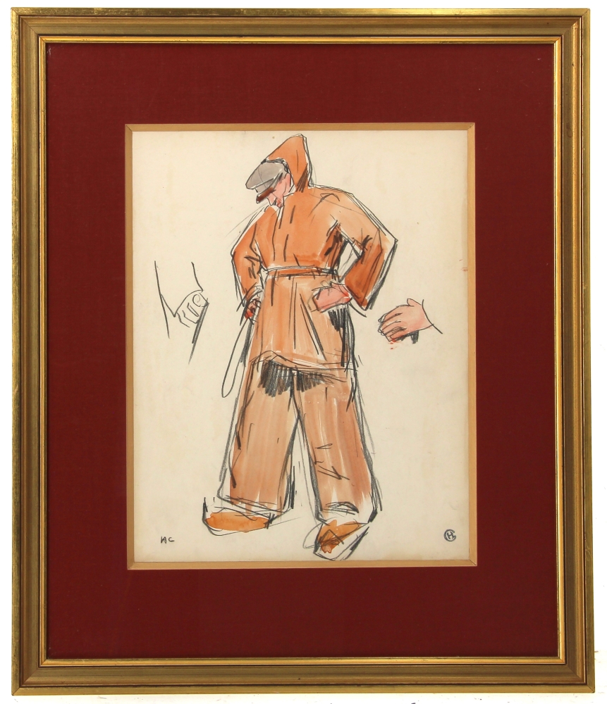 Henry Lucien CHEFFER (1880-1957) « Etude de marin en tenue de travail », aquarelle et fusain, monogrammée « HC » bas gauche et cachet d’atelier bas droite, 27 x 21 cm