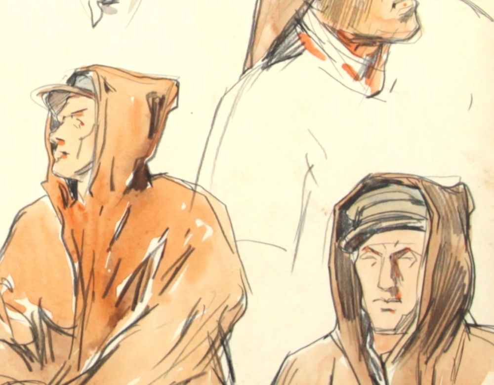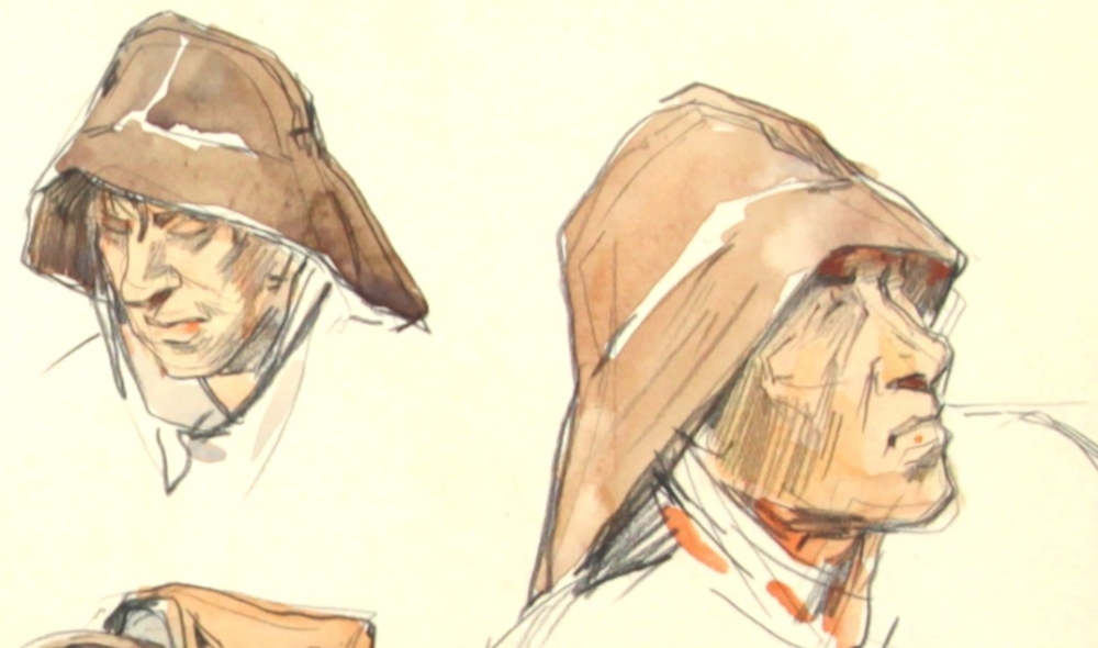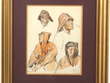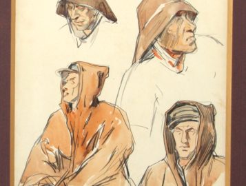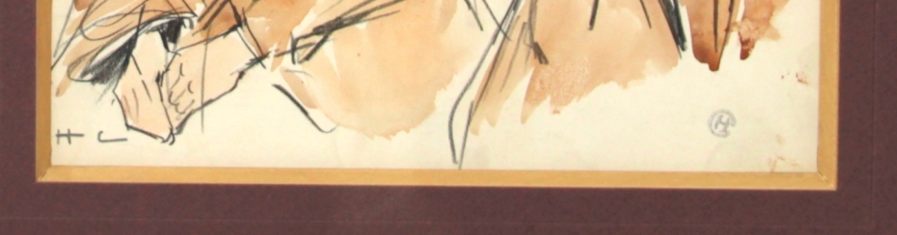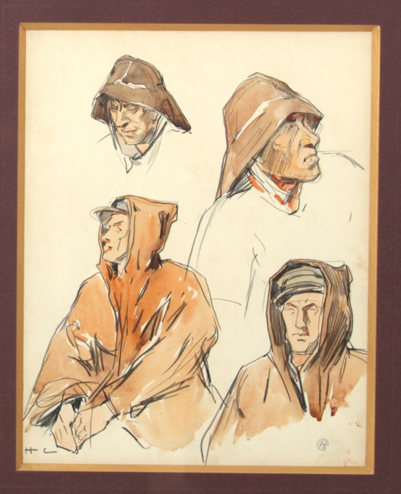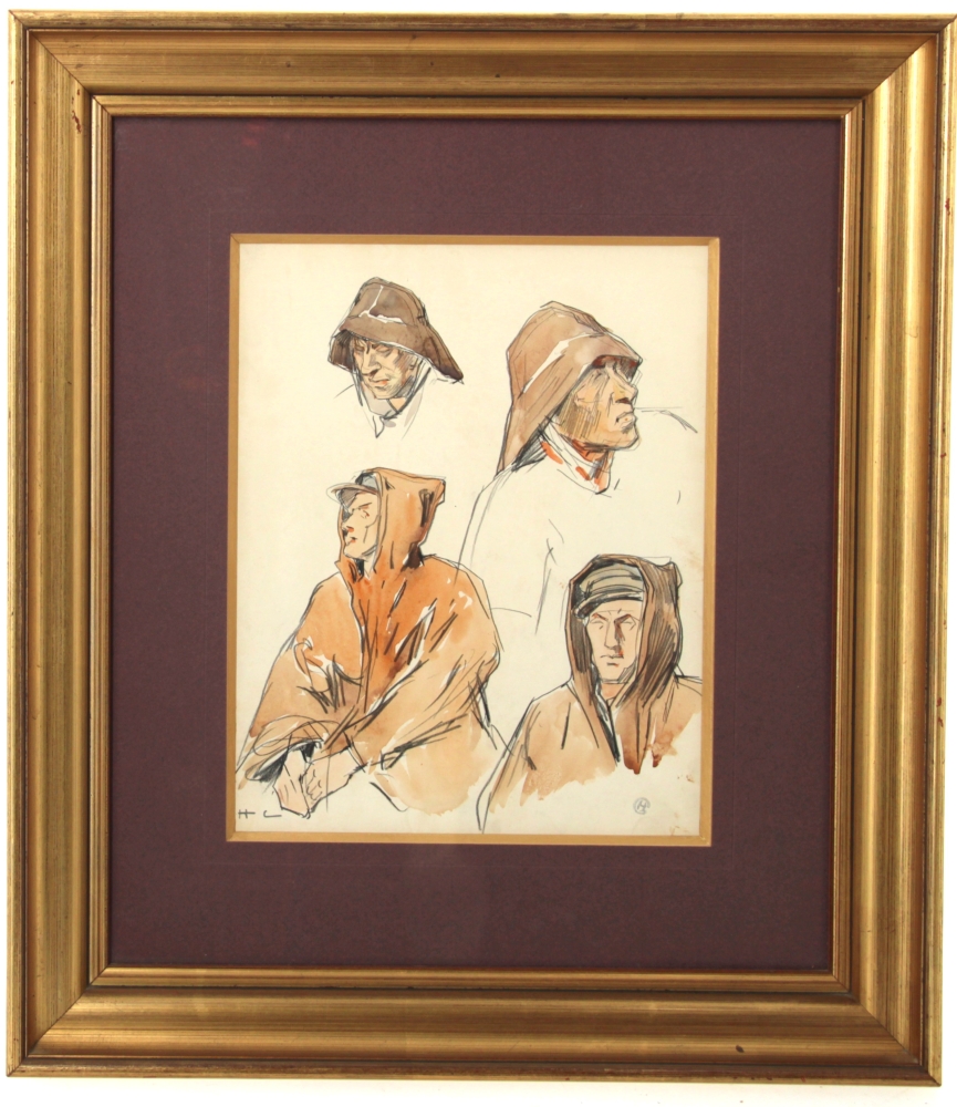 Henry Lucien CHEFFER (1880-1957) « Etude de marins », aquarelle et fusain, monogrammée bas gauche, cachet d’atelier bas droite, 26 x 21 cm