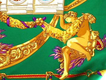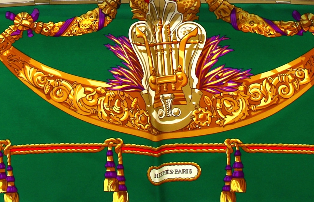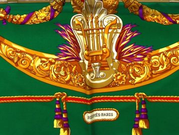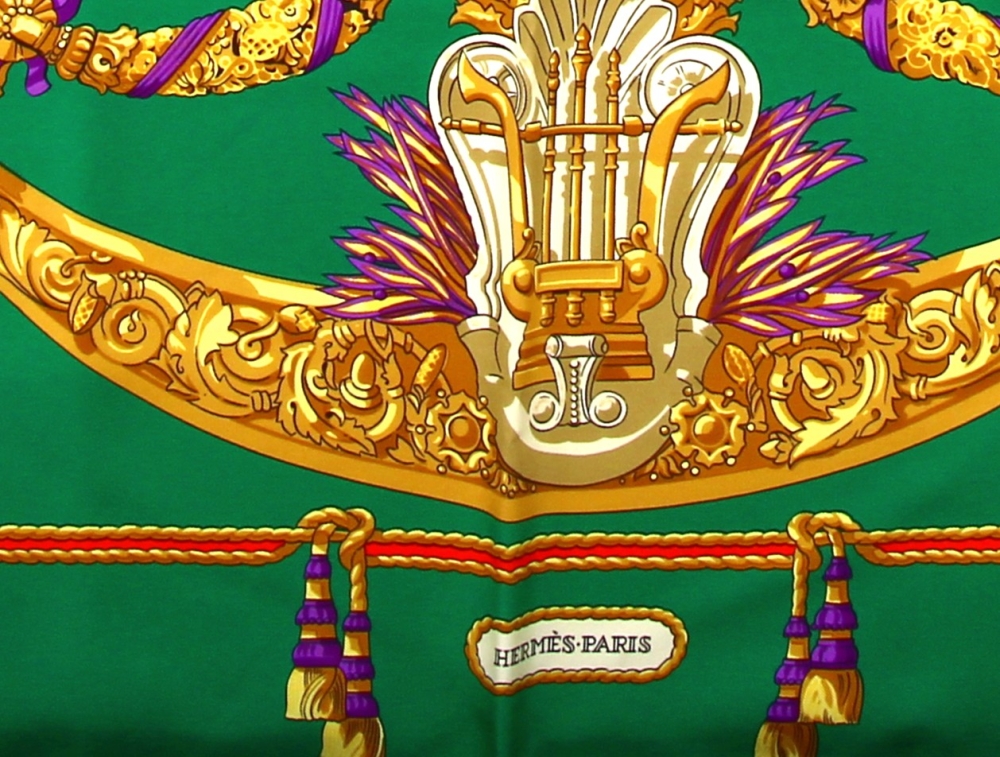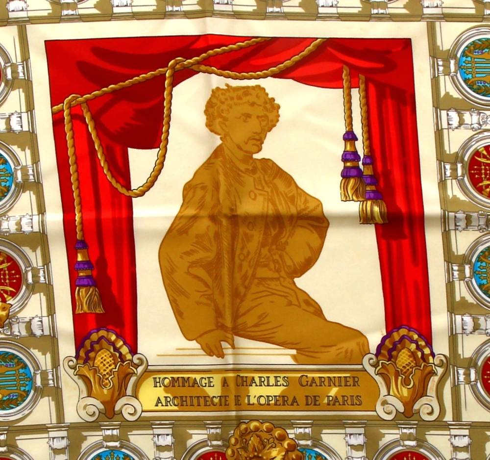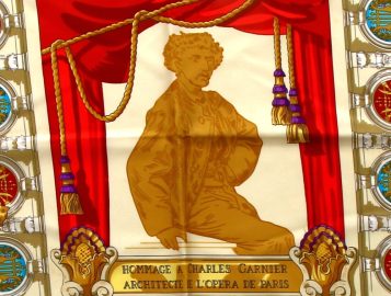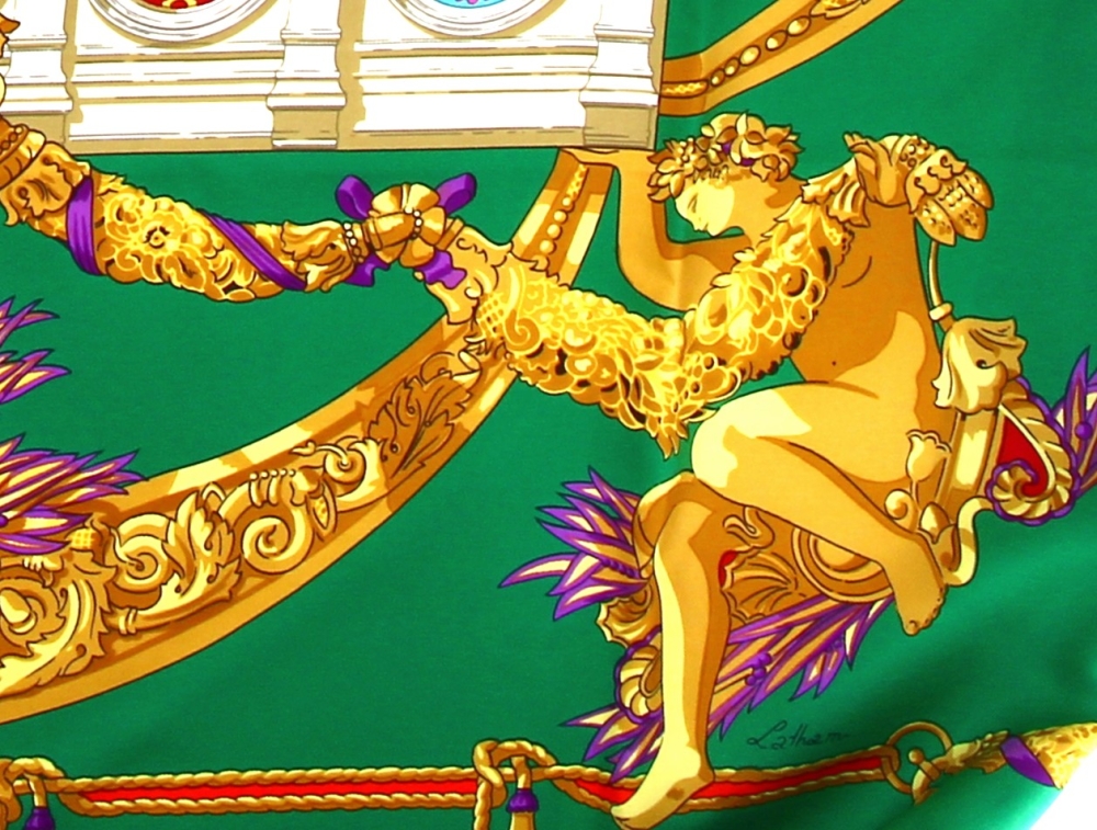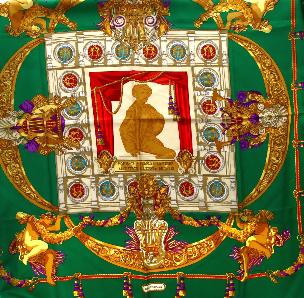 HERMES Paris – Carré en soie « Hommage à Charles Garnier » à fond vert