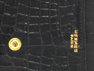 HERMES Paris – Porte-photos en croco noir, 15 x 10