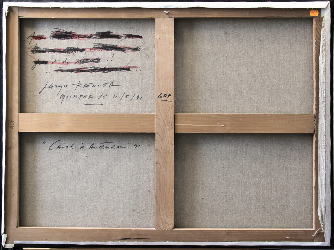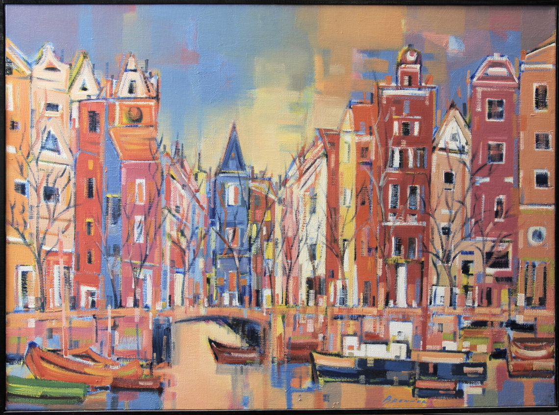 Jacques BRENNER (1936-2023) « Canal à Amsterdam », acrylique sur toile, 1991, signée bas droite, 74 x 100 cm