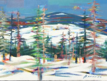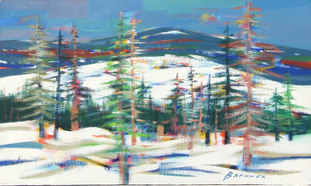 Jacques BRENNER (1936-2023) « Neige à Font Romeu, 1978 », acrylique sur toile, signée bas droite, 27 x 46 cm
