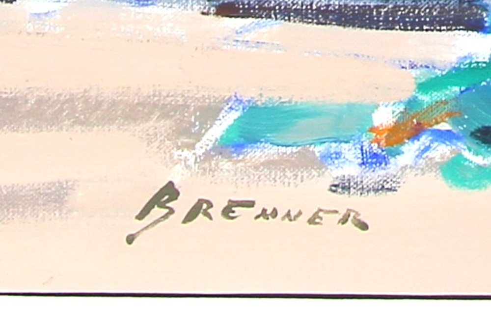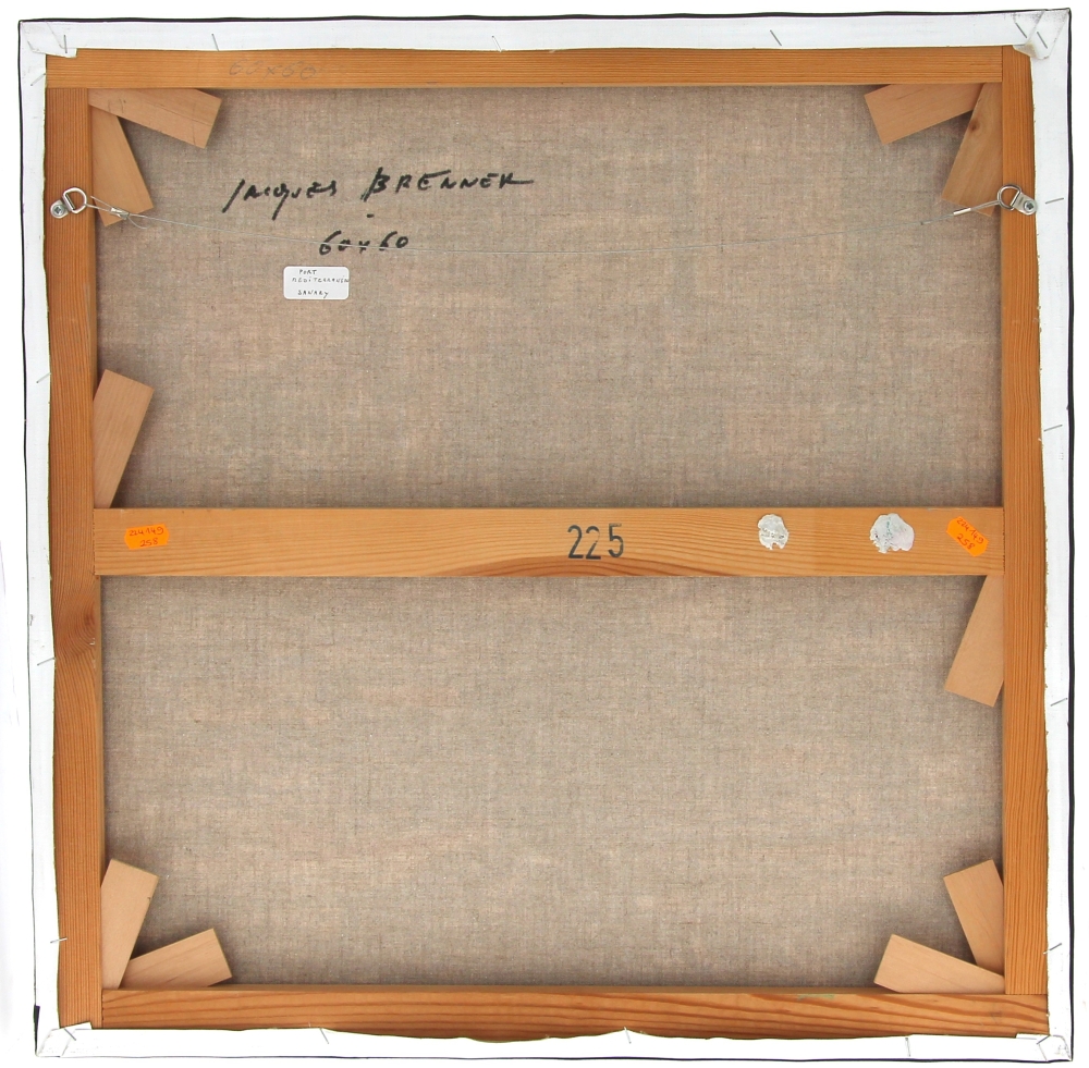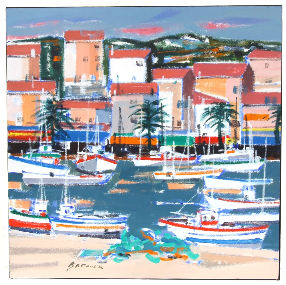Jacques BRENNER (1936-2023) « Port médittéranéen, Sanary », acrylique sur toile, signée bas gauche, 60 x 60 cm