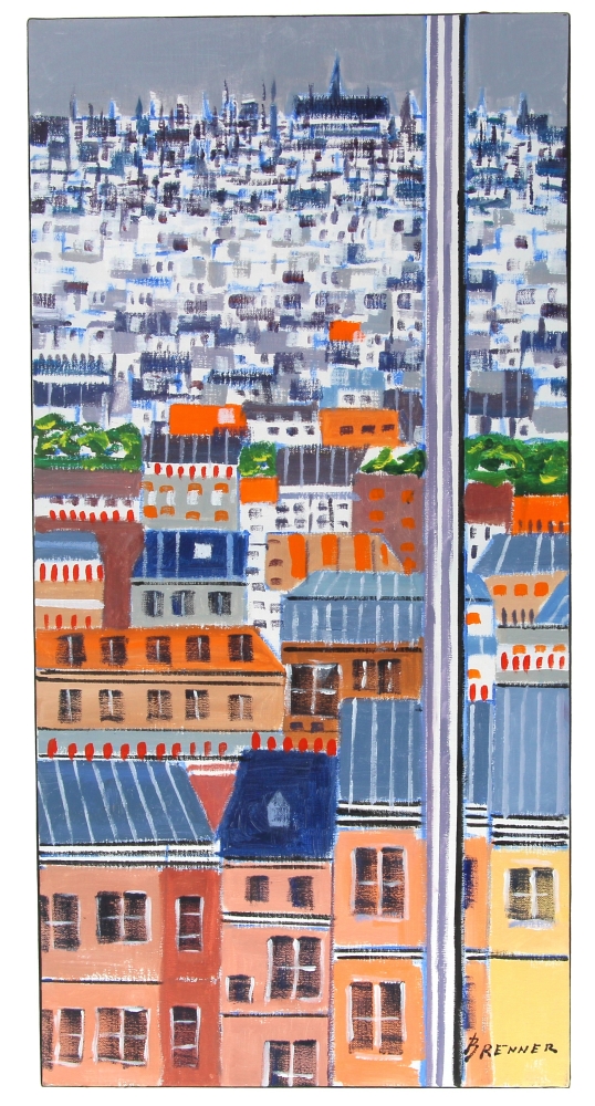 Jacques BRENNER (1936-2023) « Vue de Beaubourg 1, Paris », acrylique sur toile, signée bas droite, 2013, 80 x 40 cm