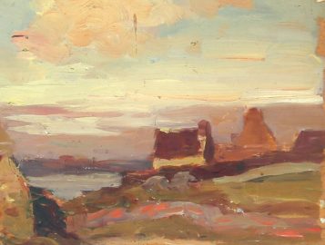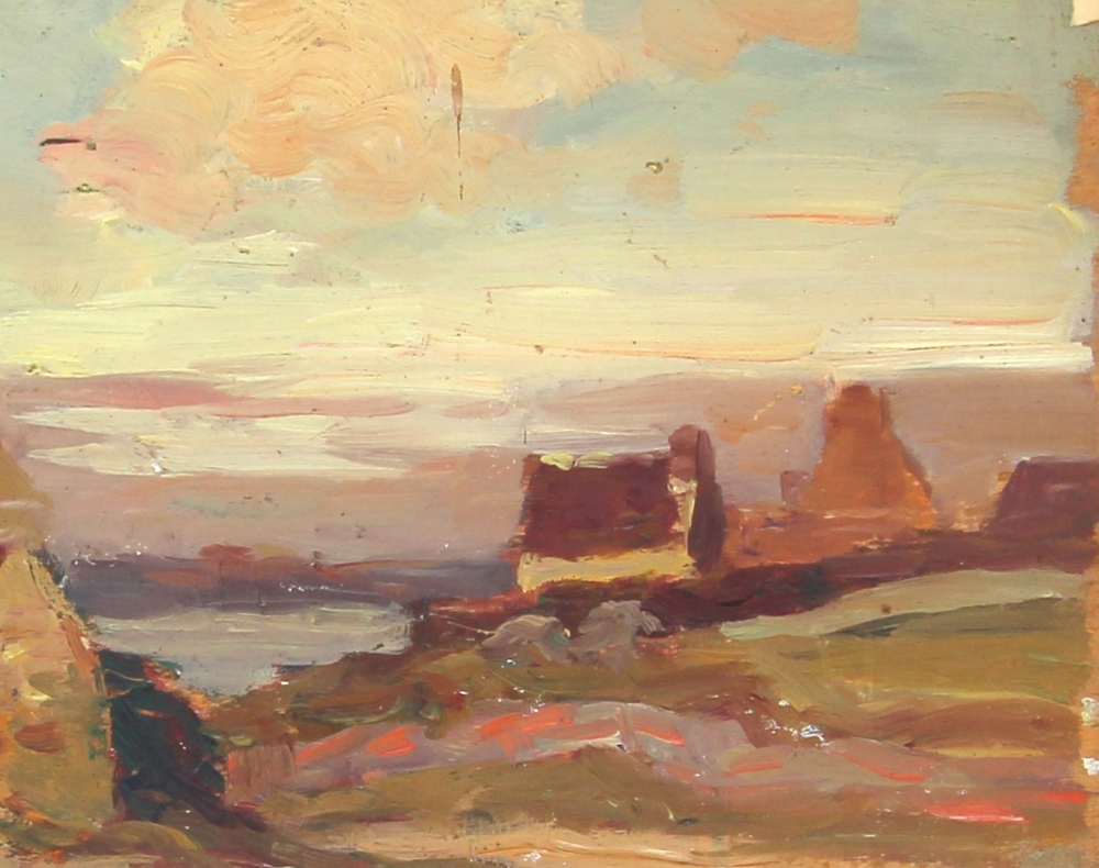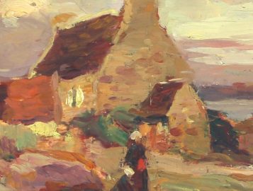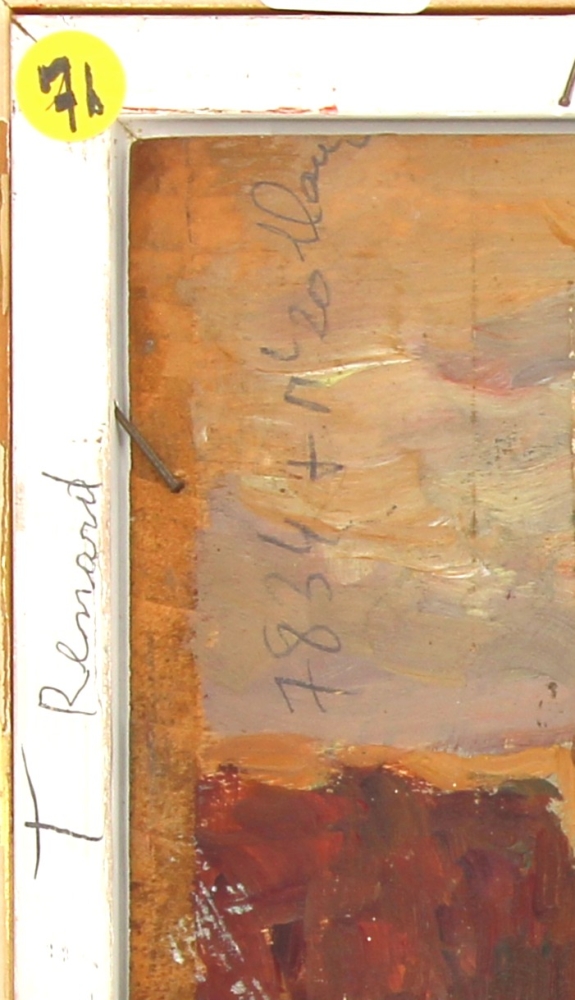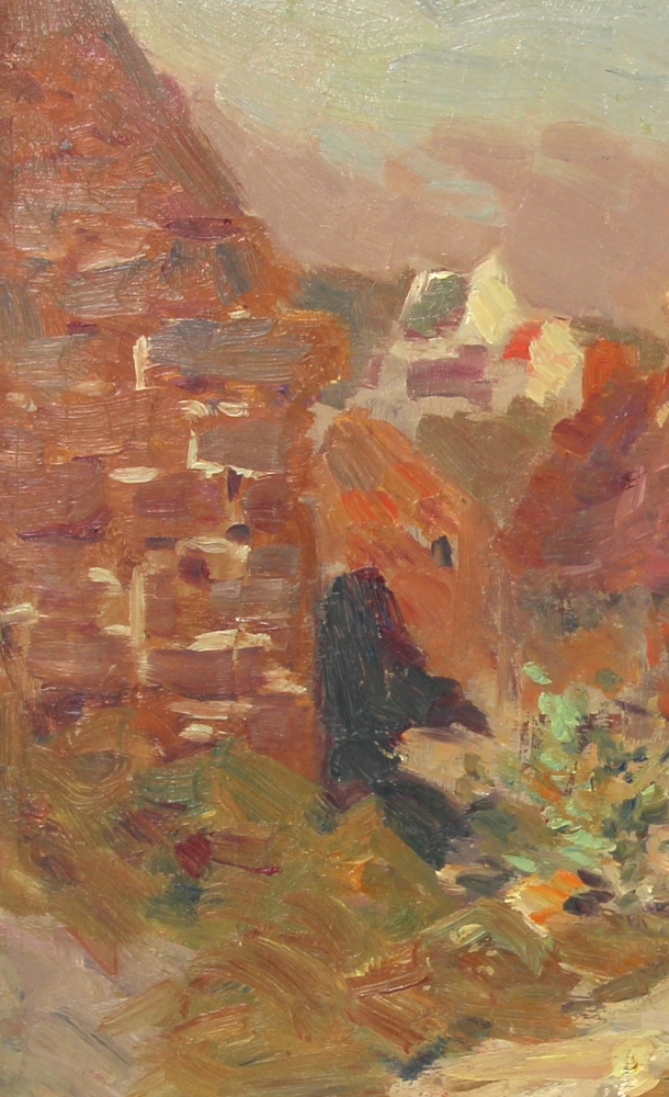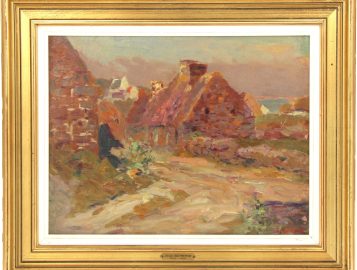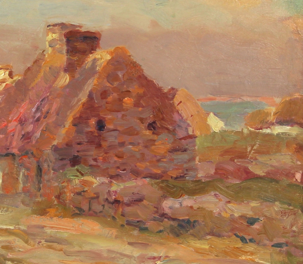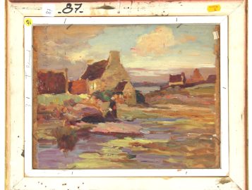 Jean REMOND (1872-1913) « Maisons près de la mer », huile sur panneau, signée bas droite, 26 x 34 cm. Une autre huile au revers « Bretonne près des maisons », encadrée