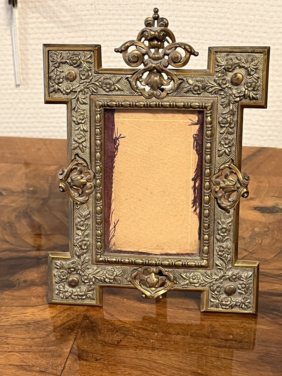Joli cadre porte-photo XIXe en bronze. H. 18 x 13 cm, int. 9,5 x 6,5 cm