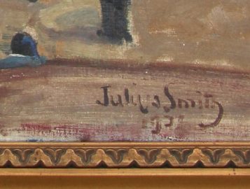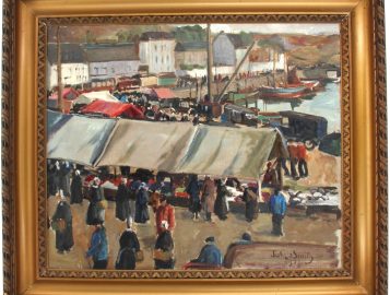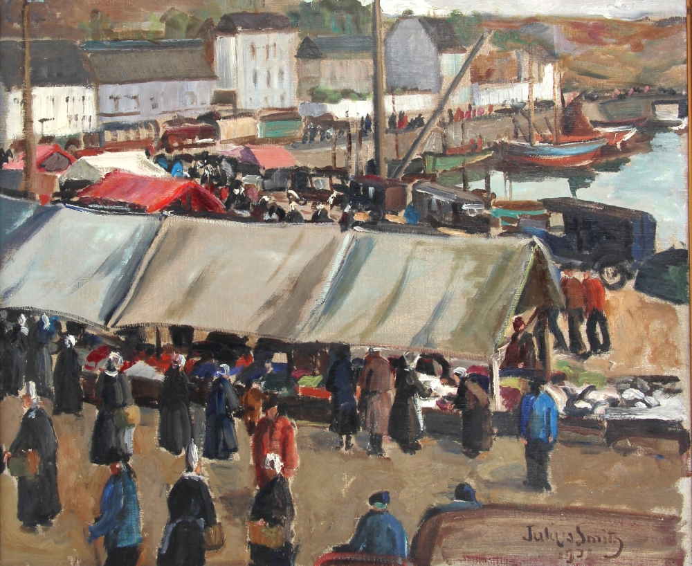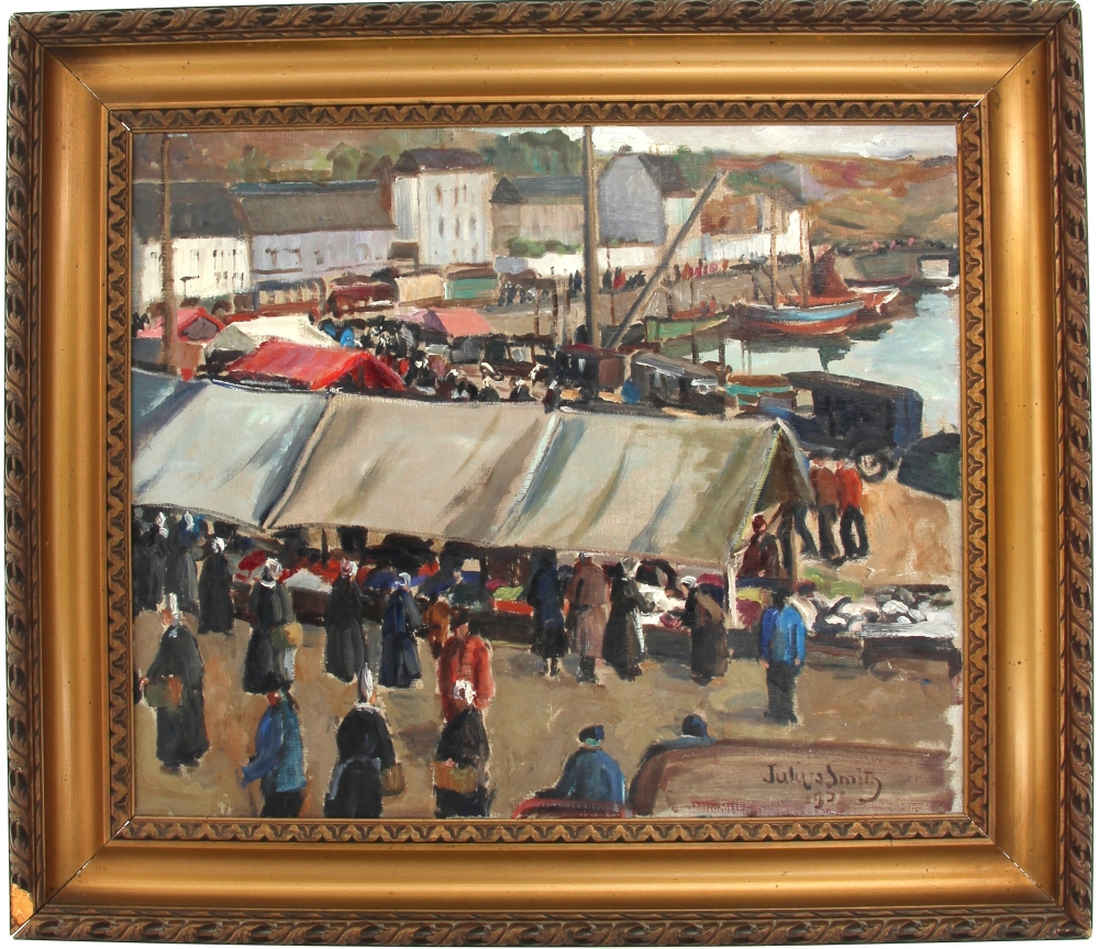 Julius SMITH (1885-1960) « Scène de marché à Audierne », huile sur toile, signée bas droite, datée « 1937 », 50 x 60 cm