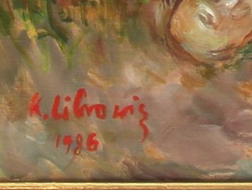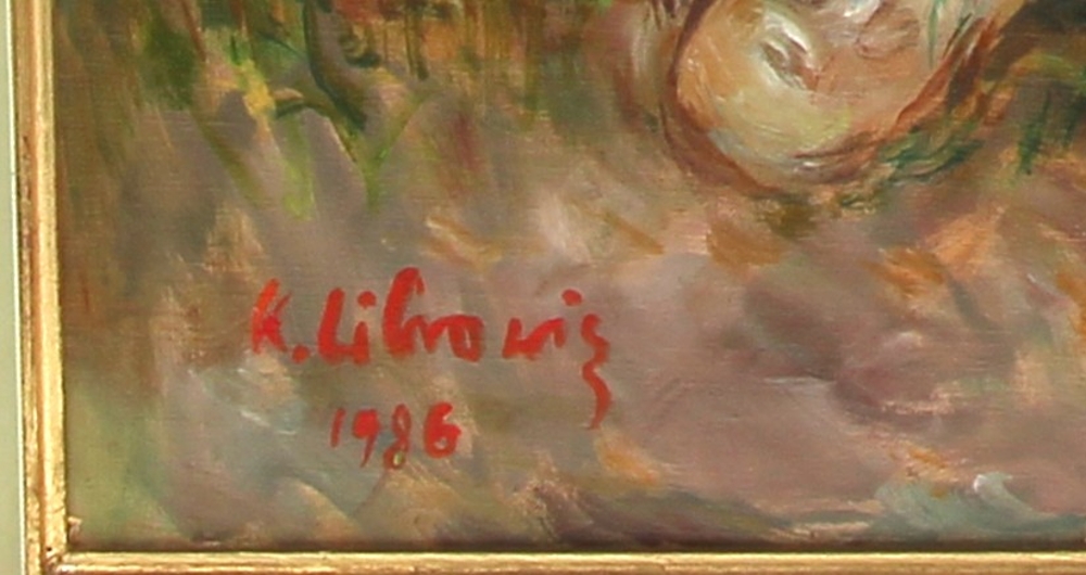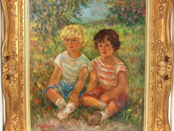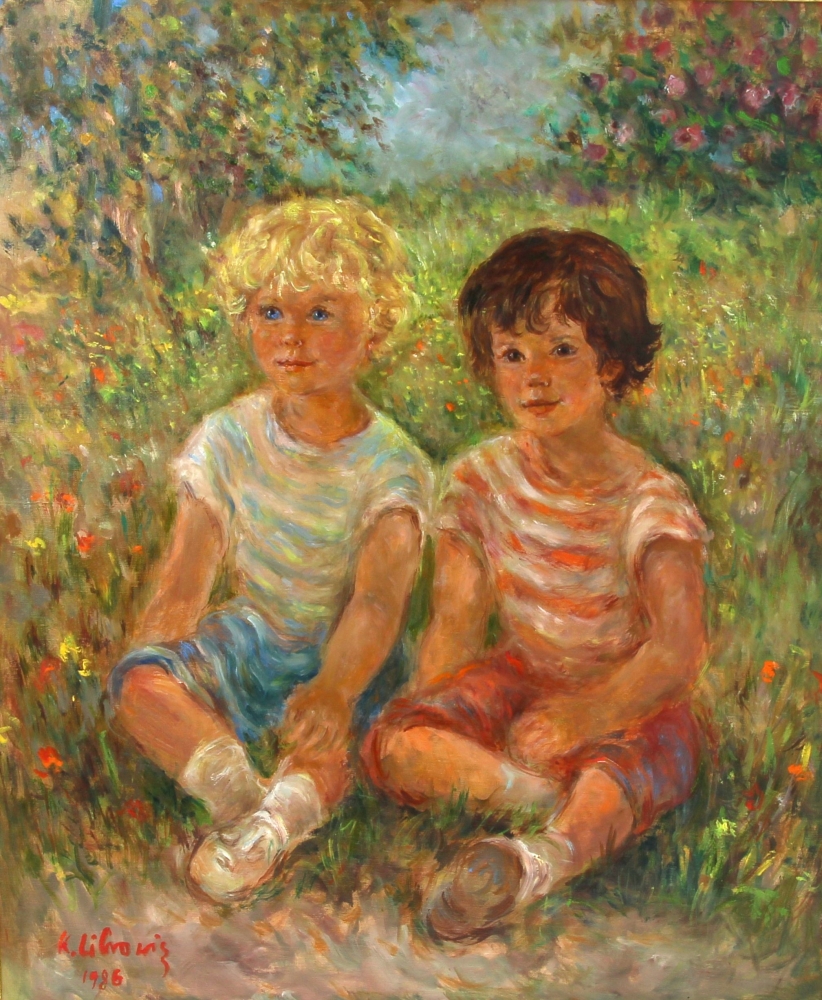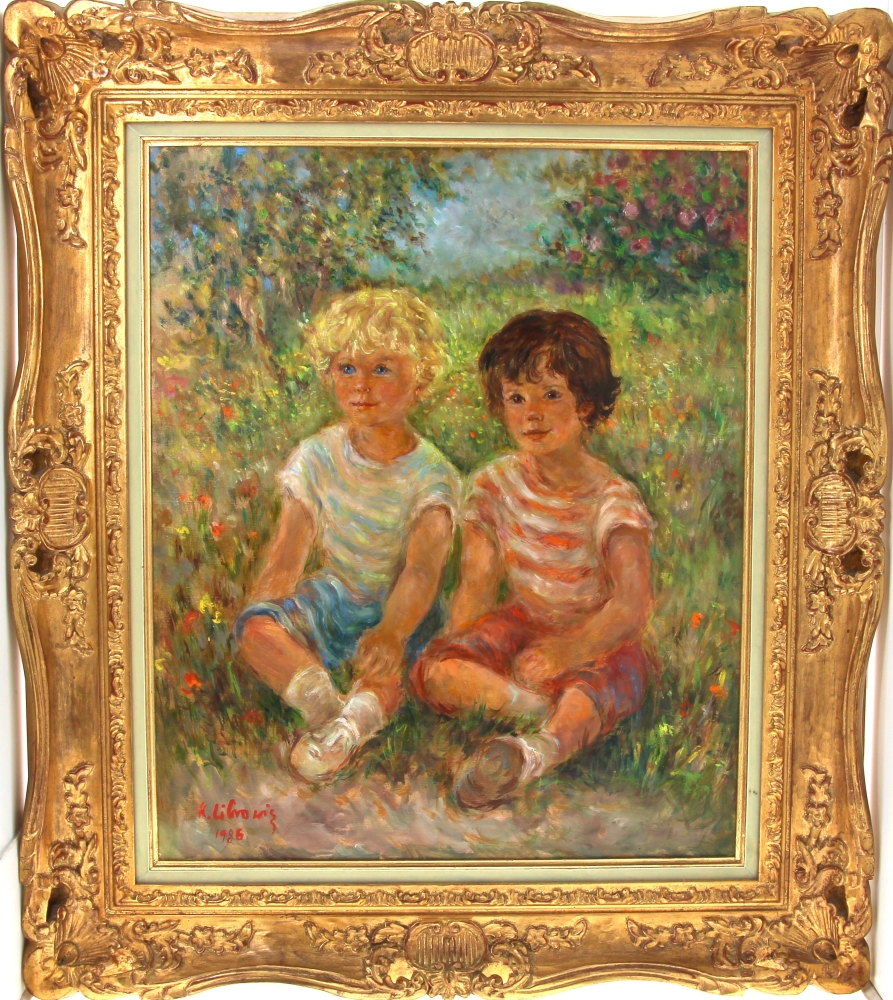 Katherine LIBROWICZ (1912-1991) « Deux enfants au jardin », huile sur toile, signée bas gauche, 65 x 54 cm
