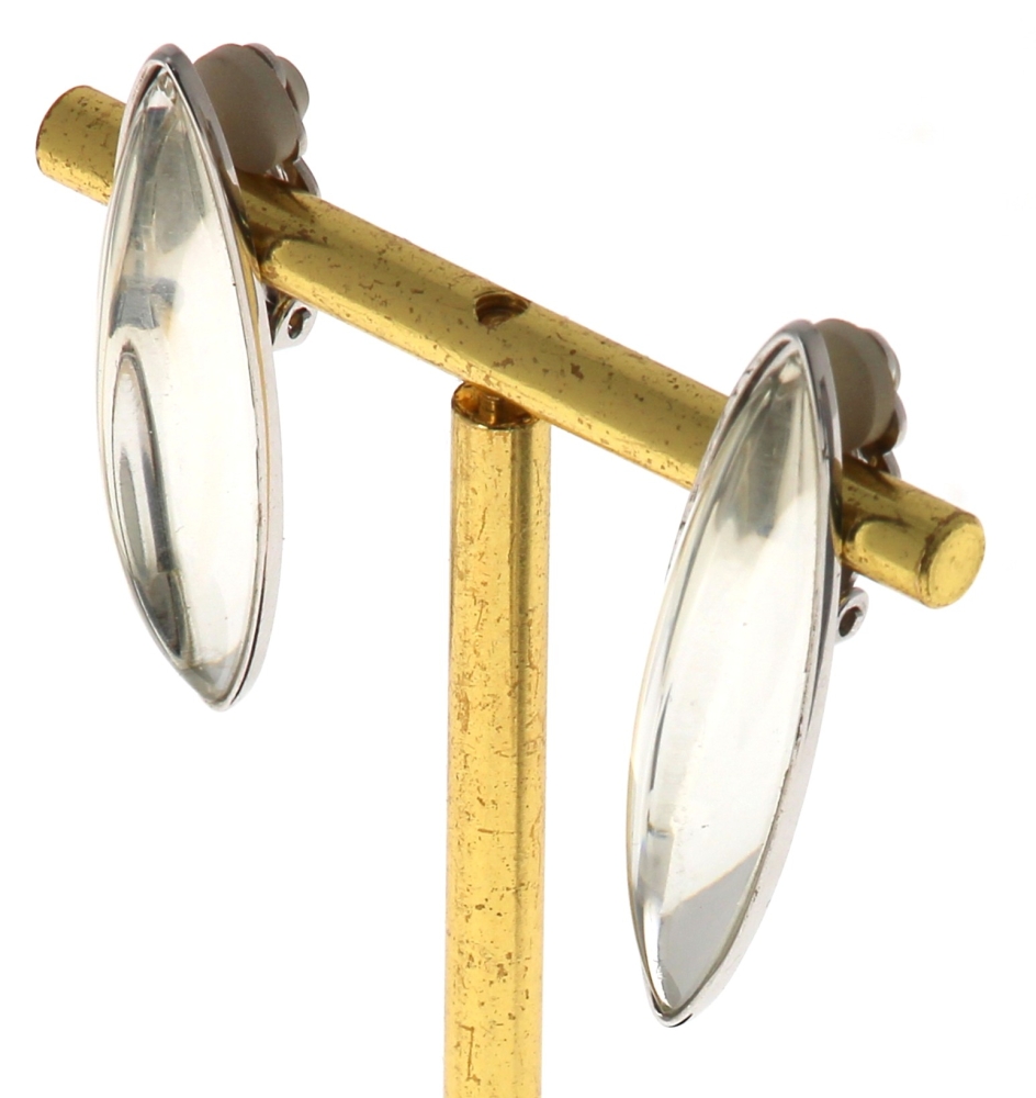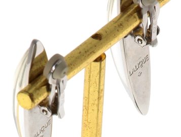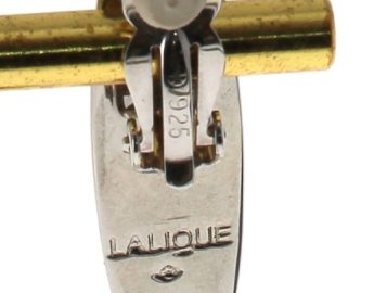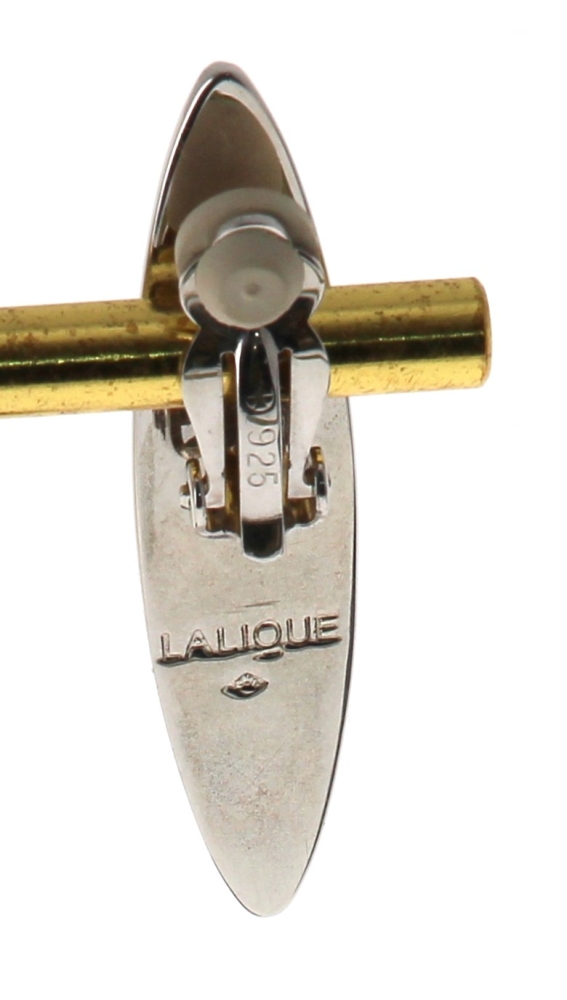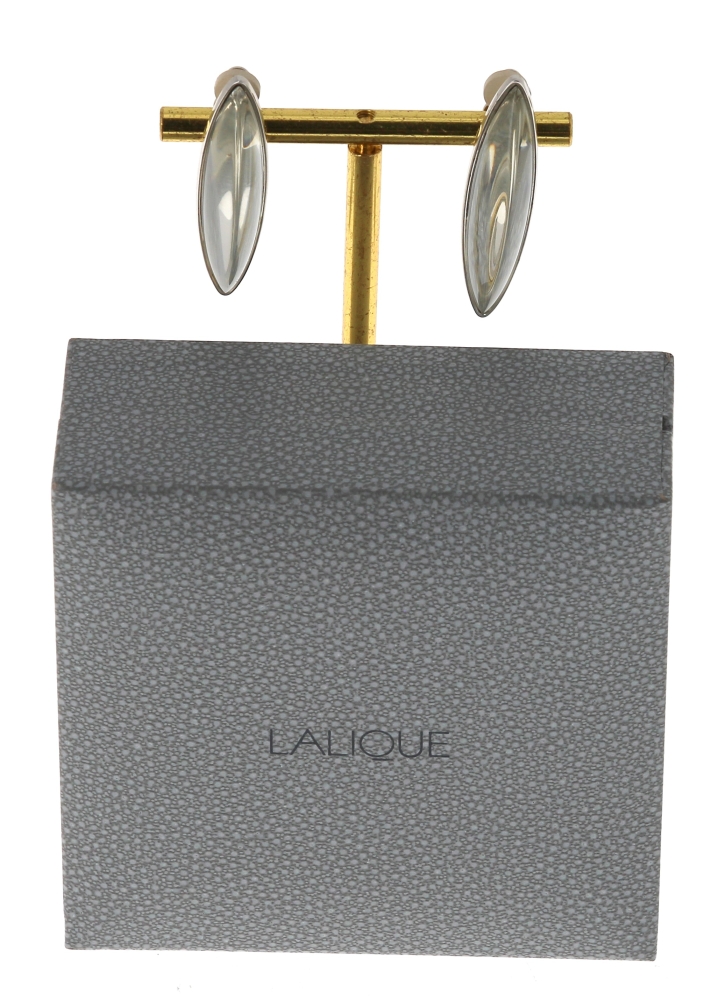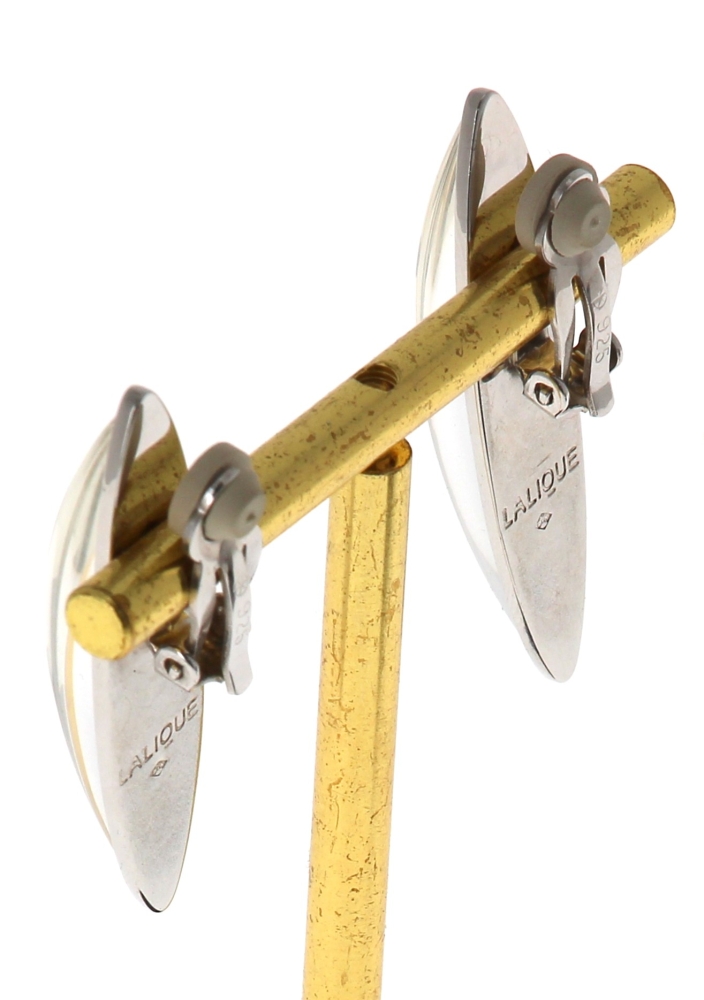 LALIQUE – Paire de clips d’oreille forme navette, monture argent 925ème, éclat incolore, signés, boîte d’origine