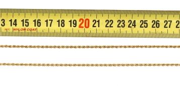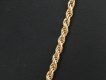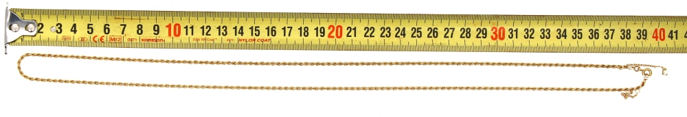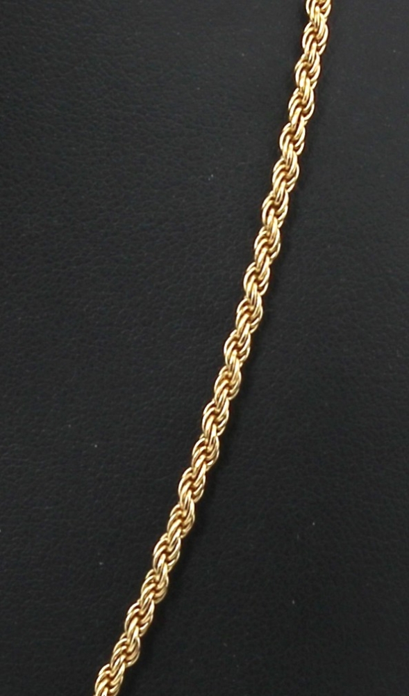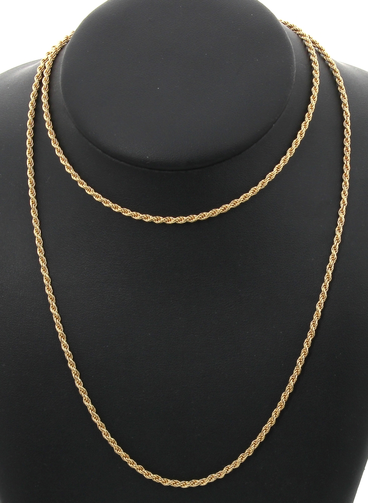 Longue chaîne en or jaune 18 carats avec chaînette de sécurité, maille corde, L 80,5 cm. Poids 23,20 grs