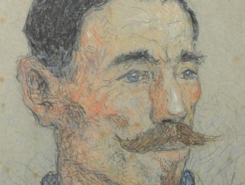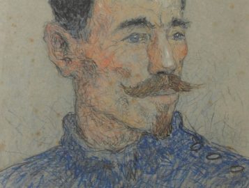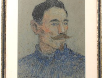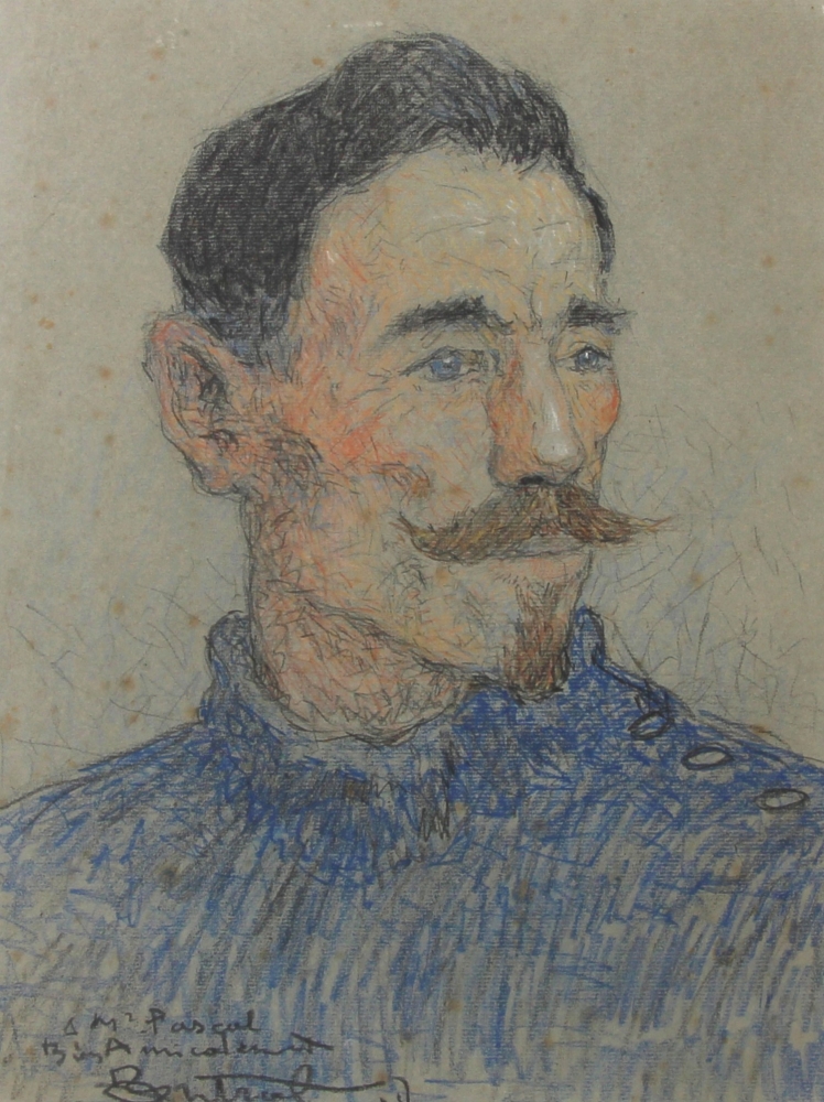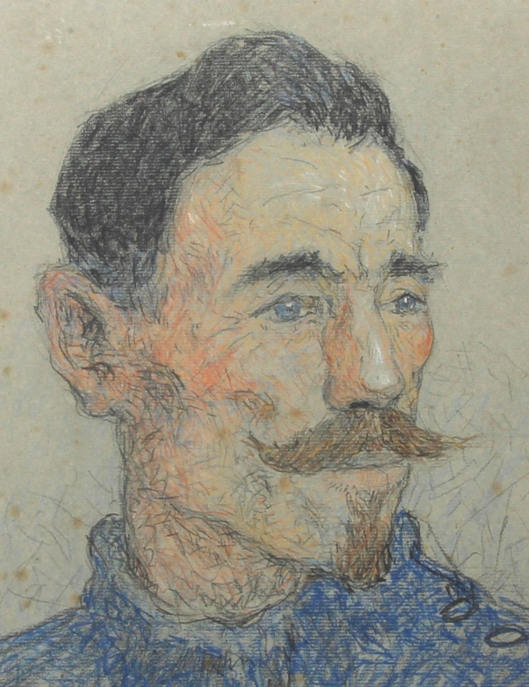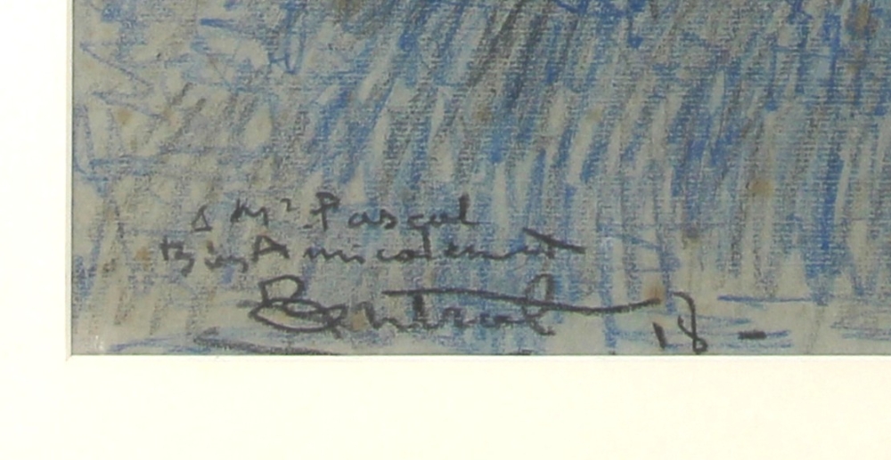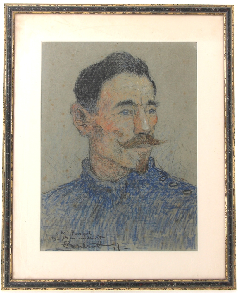 Louis Robert ANTRAL (1895-1939) « Portrait de marin », dessin au fusain et crayons de couleurs, signé bas gauche et daté « 18 », avec envoi « A Mr Pascal bien amicalement », 38 x 28 cm (qq rousseurs)
