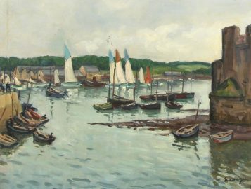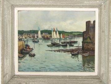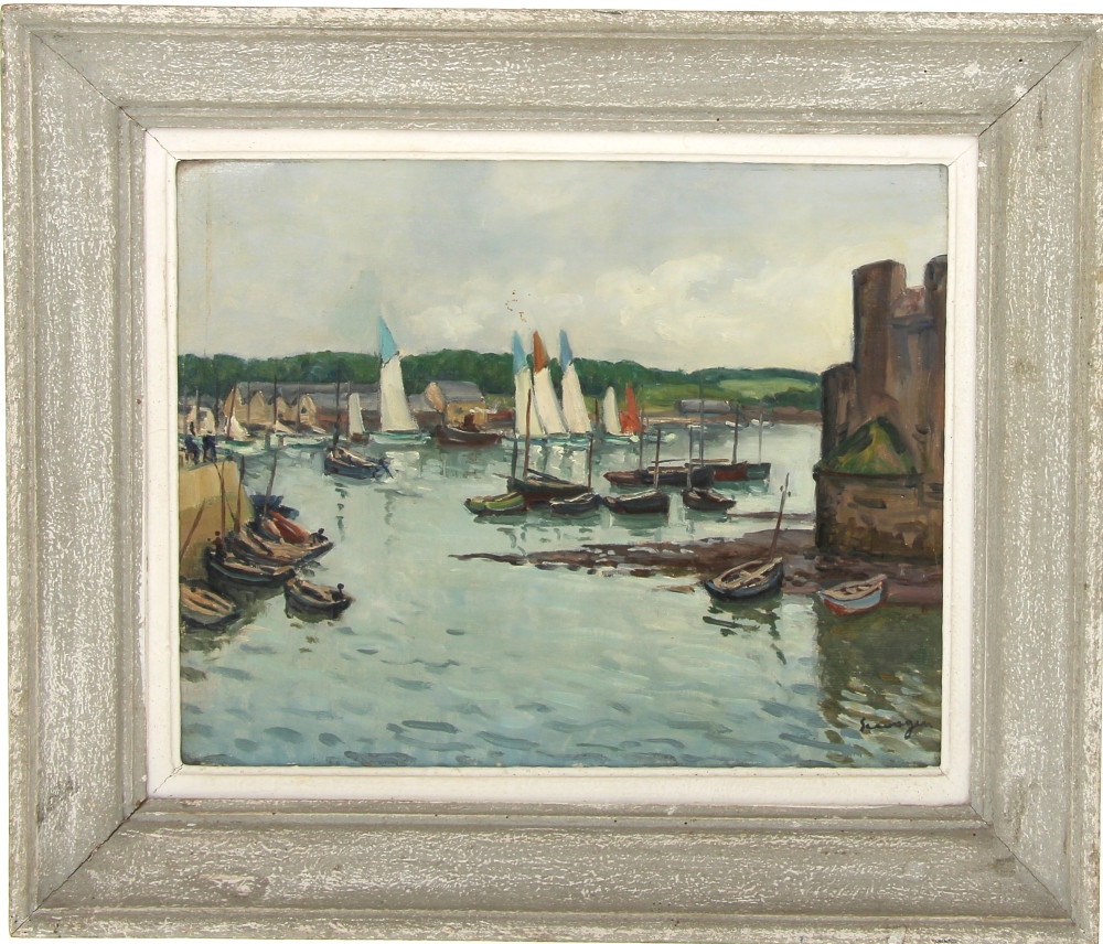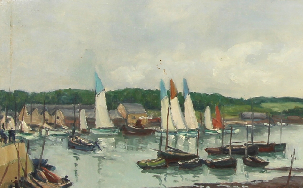 Lucien SEEVAGEN (1887-1959) « Marine à Concarneau », huile sur carton toilé, signée bas droite, 33 x 41 cm