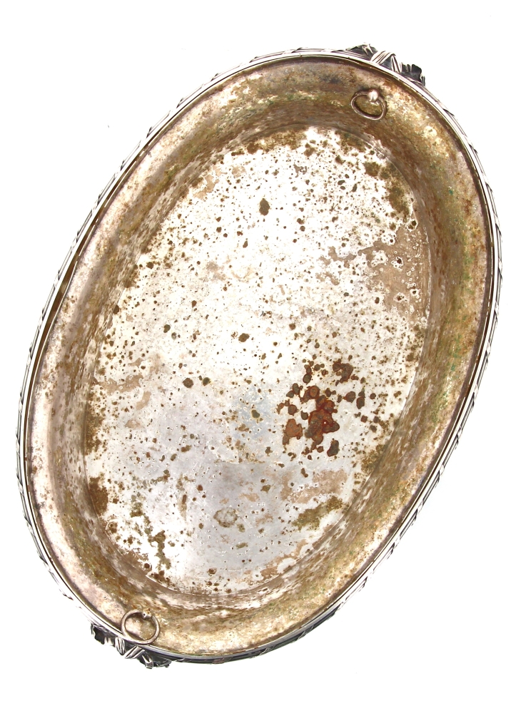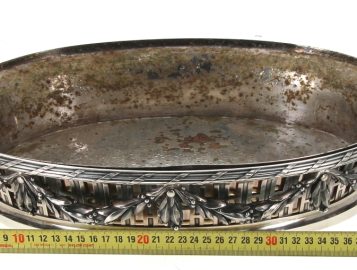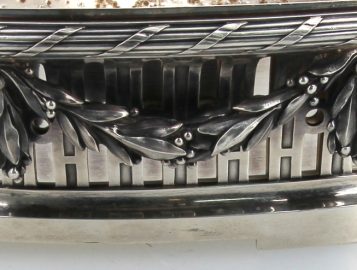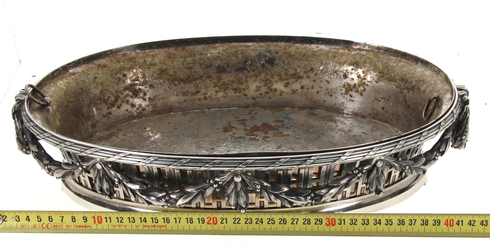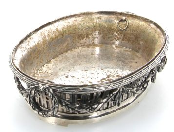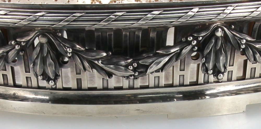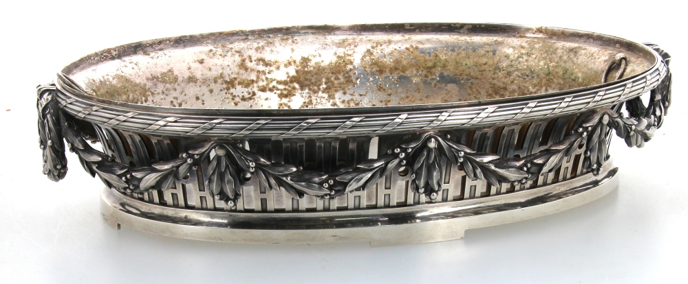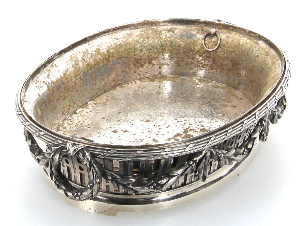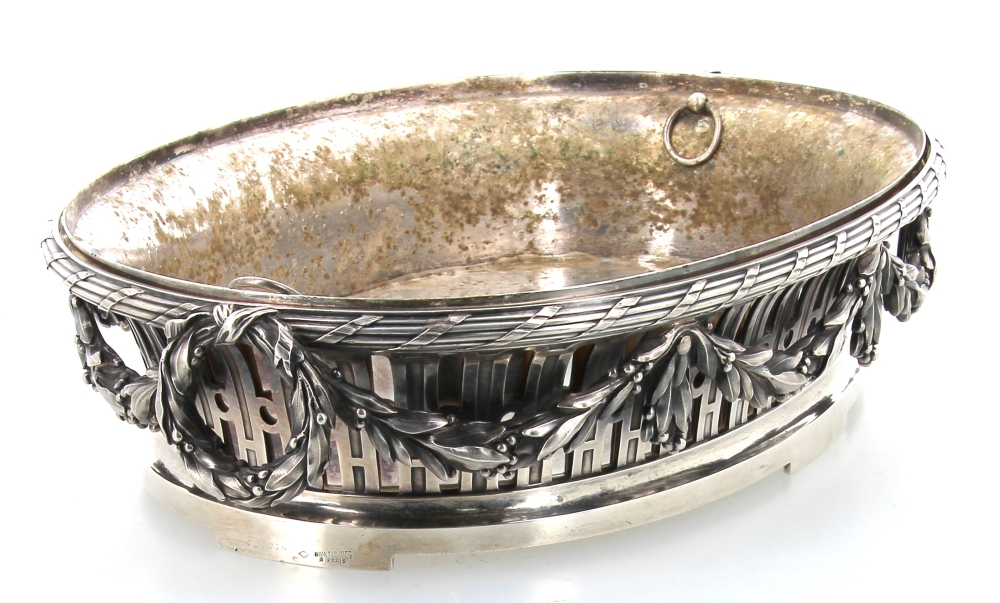 Maison BOIN-TABURET Paris (Fabricants orfèvres de 1873 à après 1900) – Belle jardinière de style Louis XVI en argent, poinçon minerve, poids 2700 grs. Intérieur en métal argenté (oxydations sur celui-ci). H 9 x L 41,5 cm