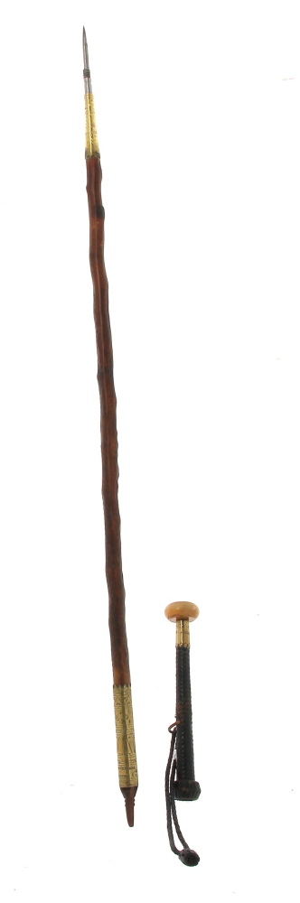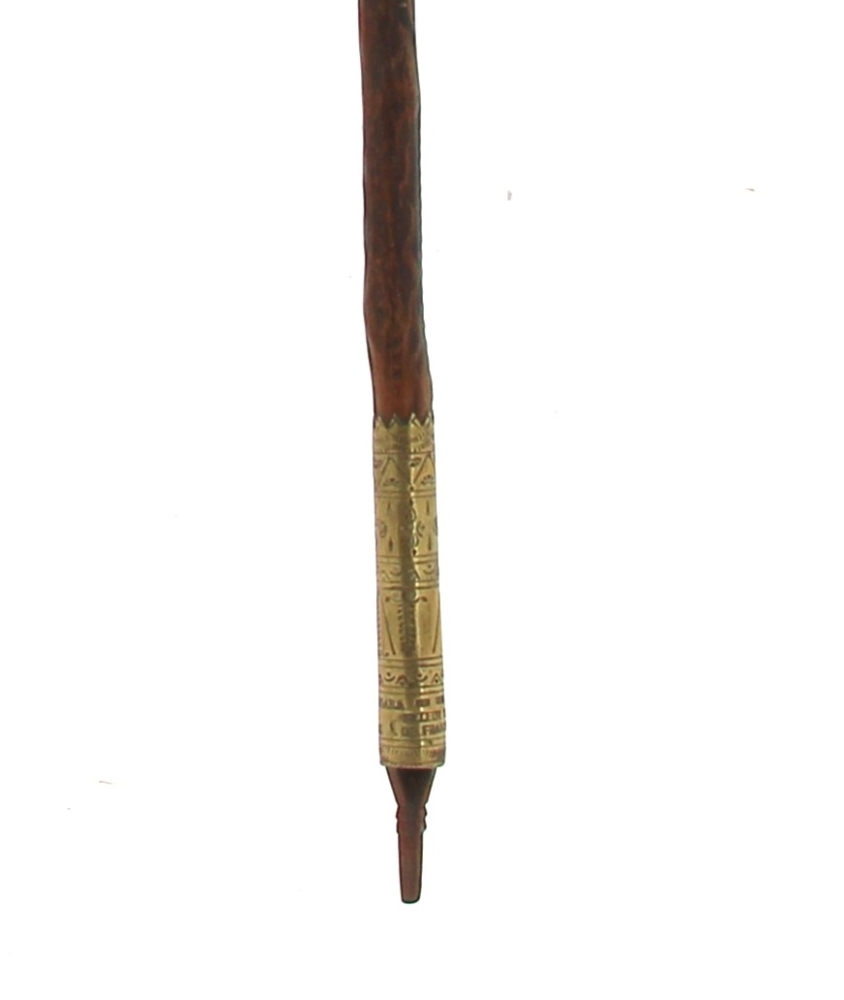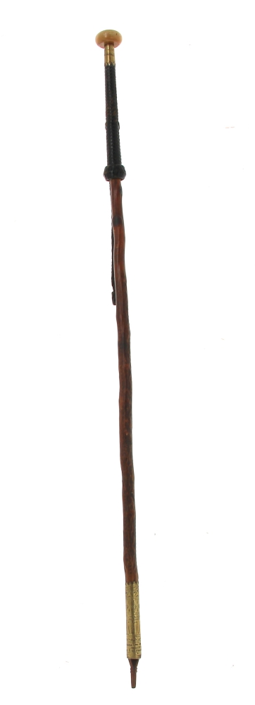 Makila basque à pommeau en corne et fût en néflier. Bague gravée « Nere bidekari laguna ». L 88 cm