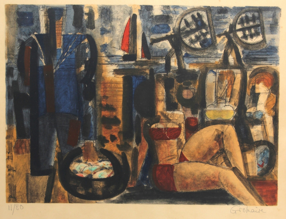 Marcel GROMAIRE (1892-1971) « Femme allongée en bord de mer » (1950), lithographie en couleurs, signée bas droite, tirage 11/80, 38 x 47 cm