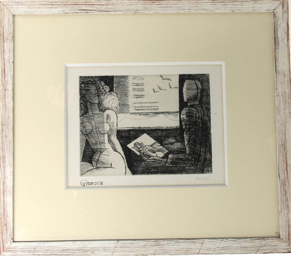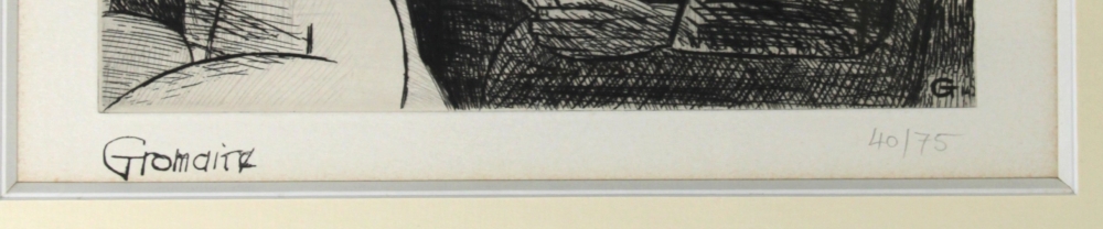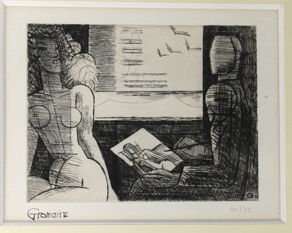 Marcel GROMAIRE (1892-1971) « Le peintre et son modèle », gravure à l’eau-forte, signée bas gauche, tirage 40/75, monogrammée dans la planche, 19,5 x 25,5 cm
