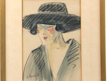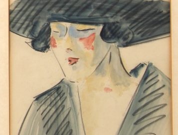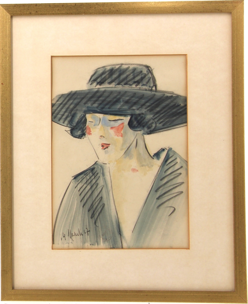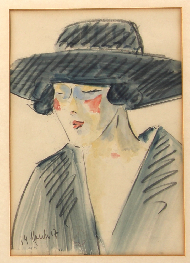 Maurice LE SCOUÉZEC (1881-1940) « Femme en chapeau », aquarelle, datée « 27 », cachet d’atelier bas gauche, 26 x 18 cm