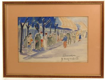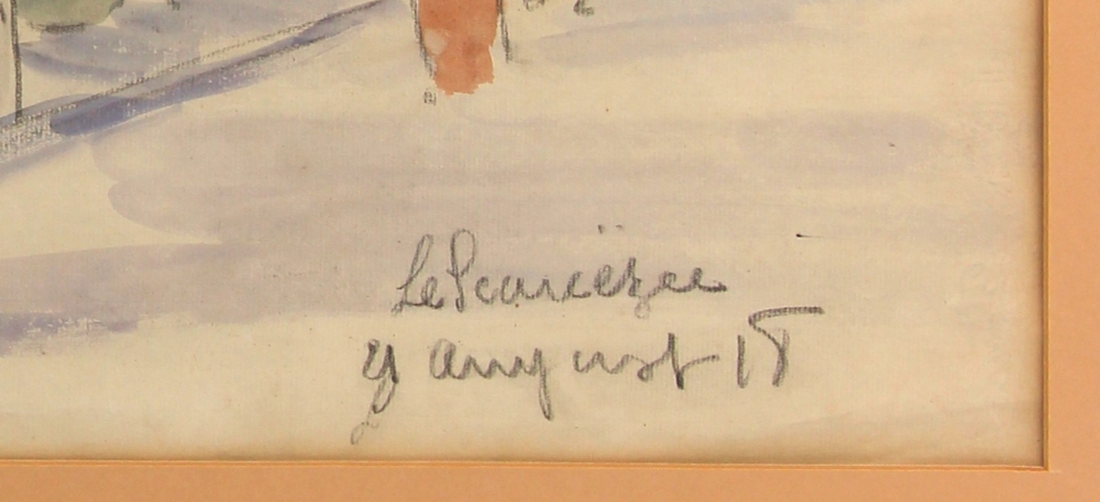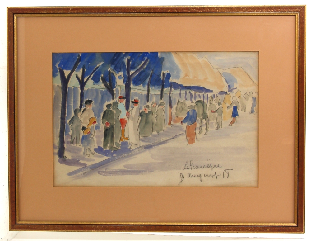 Maurice LE SCOUÉZEC (1881-1940) « Scène animée avec militaires », aquarelle, datée « 18 », signée bas droite, 29 x 44 cm (N° 1652 du catalogue raisonné du peintre)