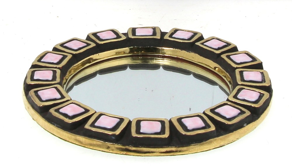 Mithé ESPELT (1923-2020) – Miroir rond modèle « Couronne », vers 1952. Terre estampée et émaillée. Diamètre : 26 cm. Modèle reproduit page 105 du catalogue raisonné de l’artiste.