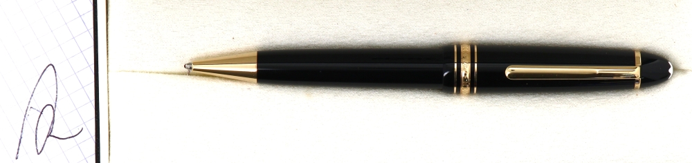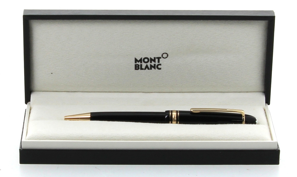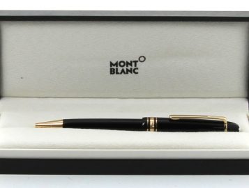 MONTBLANC – Modèle « Meisterstuck » – Roller laqué noir et métal doré, état neuf, en écrin