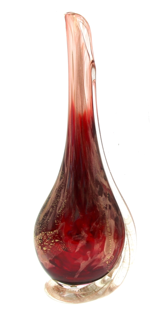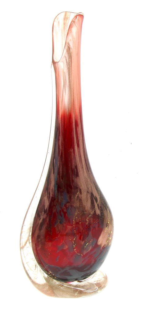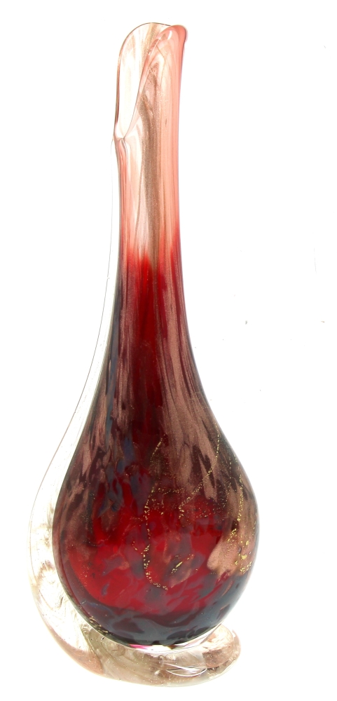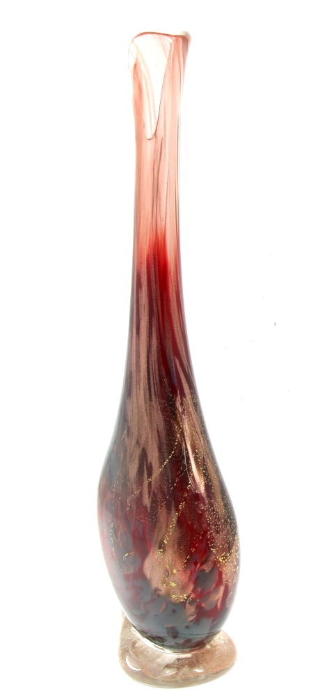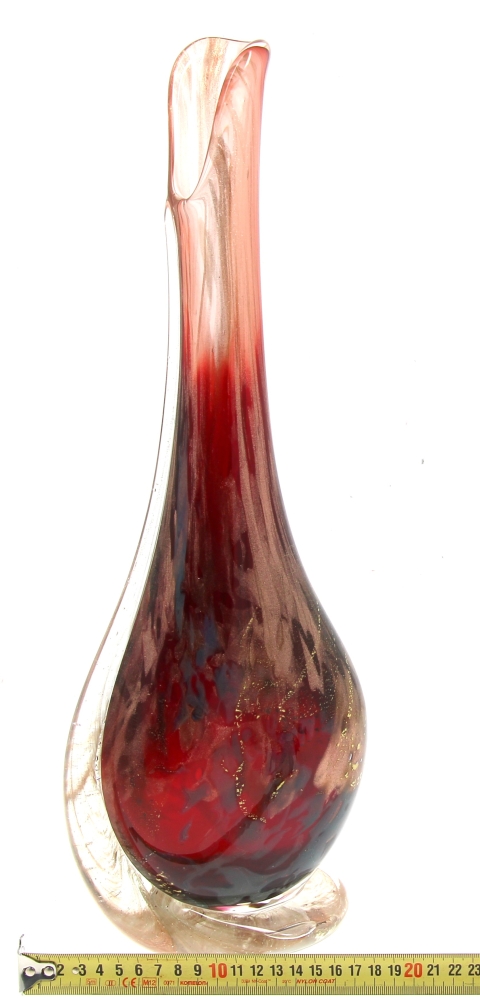 MURANO – Haut vase en verre de couleurs et paillons dorés, non signé.