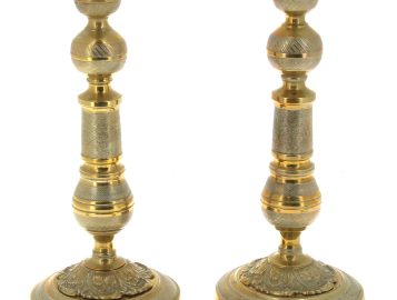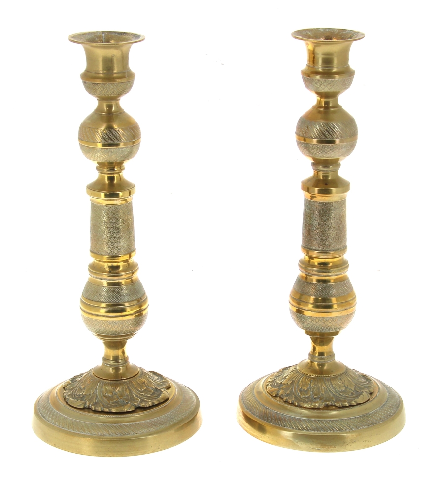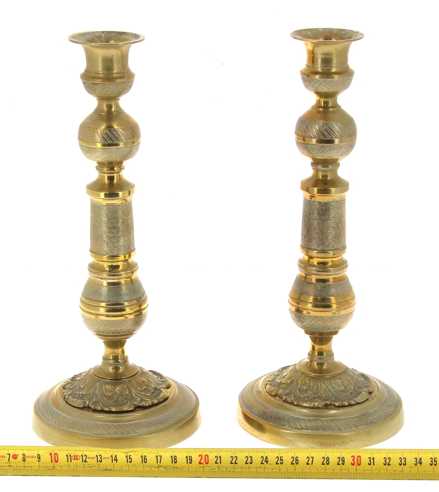 Paire de bougeoirs XIXème en bronze doré, H 29 cm