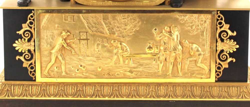 Pendule en bronze doré et bronze à patine sombre
