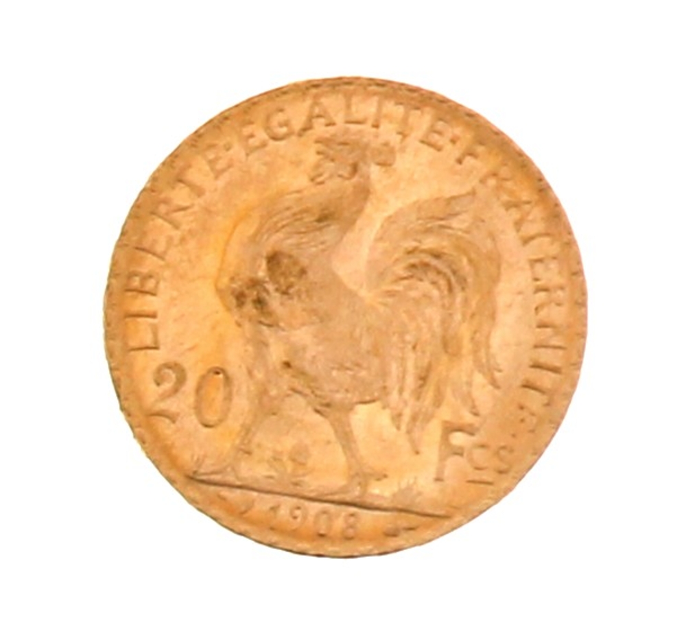Pièce de 20 F or au coq (non visible- stockée en banque – récupération sur RDV)